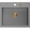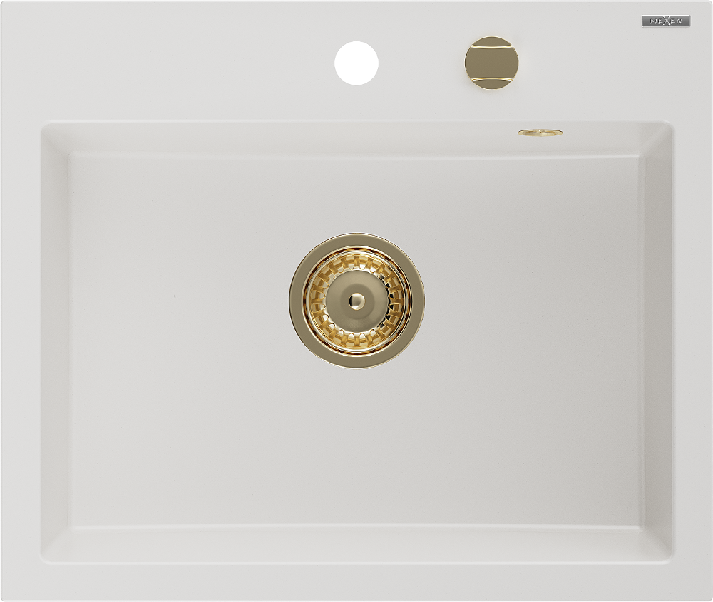 De spoelbak heeft een voorgesneden gat met een diameter van 35 mm voor eenvoudige verwijdering. Dit gat kan bijvoorbeeld worden gebruikt om een vloeistofdispenser te installeren, waardoor plastic flessen in de keuken overbodig zijn en een elegante afwerking ontstaat.