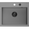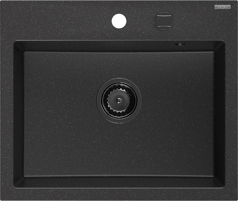 Mexen Oscar granieten gootsteen 1-komerig 580 x 490 mm, zwart/zilver metallic, zwarte sifon - 6519581000-73-B