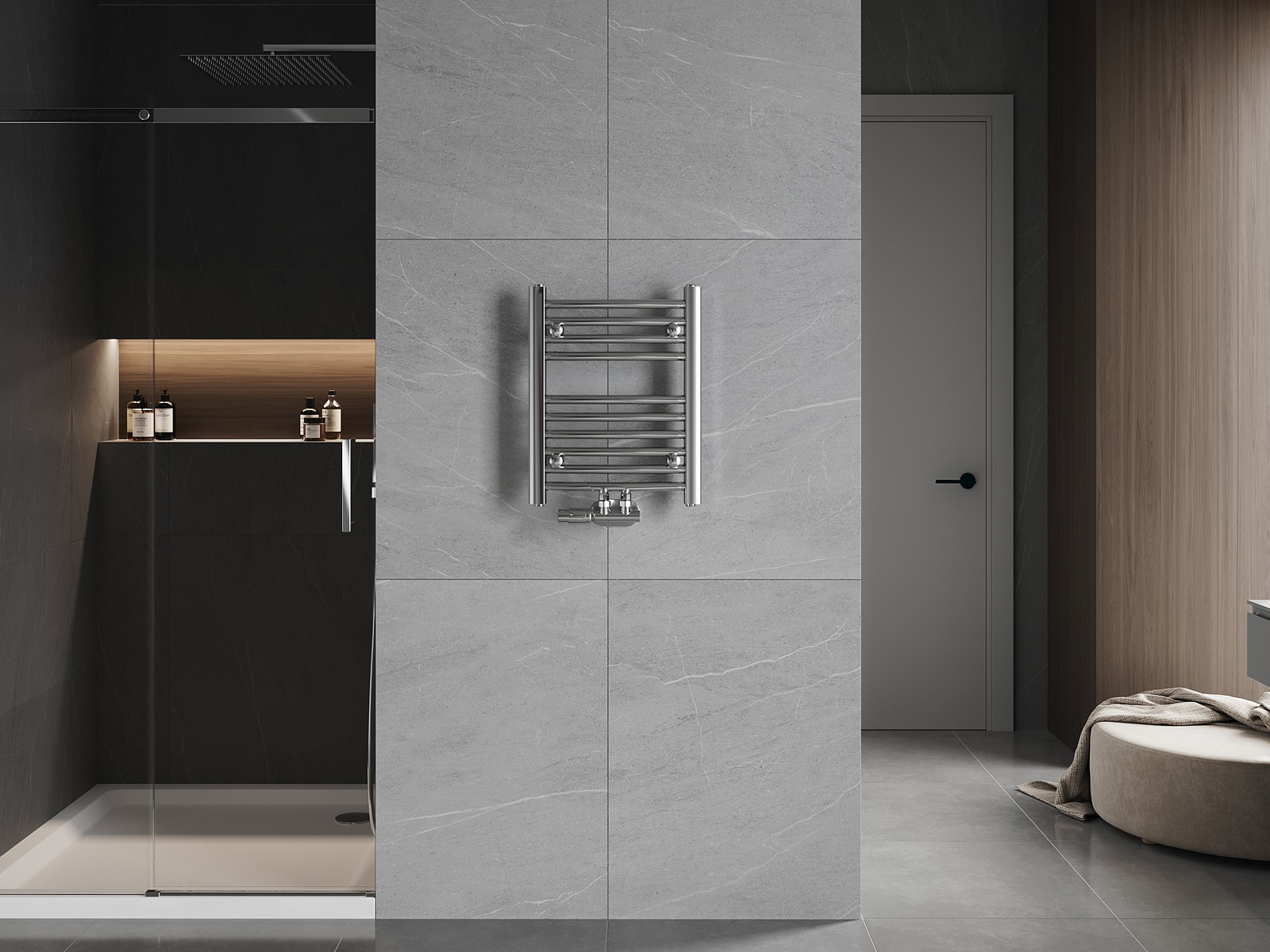 De Mexen Ares badkamer radiator is een stijlvolle en functionele oplossing die je badkamer perfect verwarmt. Dankzij de compacte afmetingen van 500 x 400 mm en het verwarmingsvermogen van 142 W, is het geschikt voor verschillende ruimtes. Het chromen, corrosiebestendige oppervlak zorgt voor duurzaamheid en een elegante uitstraling. Praktische aansluitingen en de mogelijkheid om een heater te monteren zijn extra voordelen. Gemaakt van hoogwaardig staal, het onderscheidt zich door brandweerstandsklasse A1 en de mogelijkheid om te werken bij temperaturen tot 95°C. De set bevat alle benodigde montage-elementen.