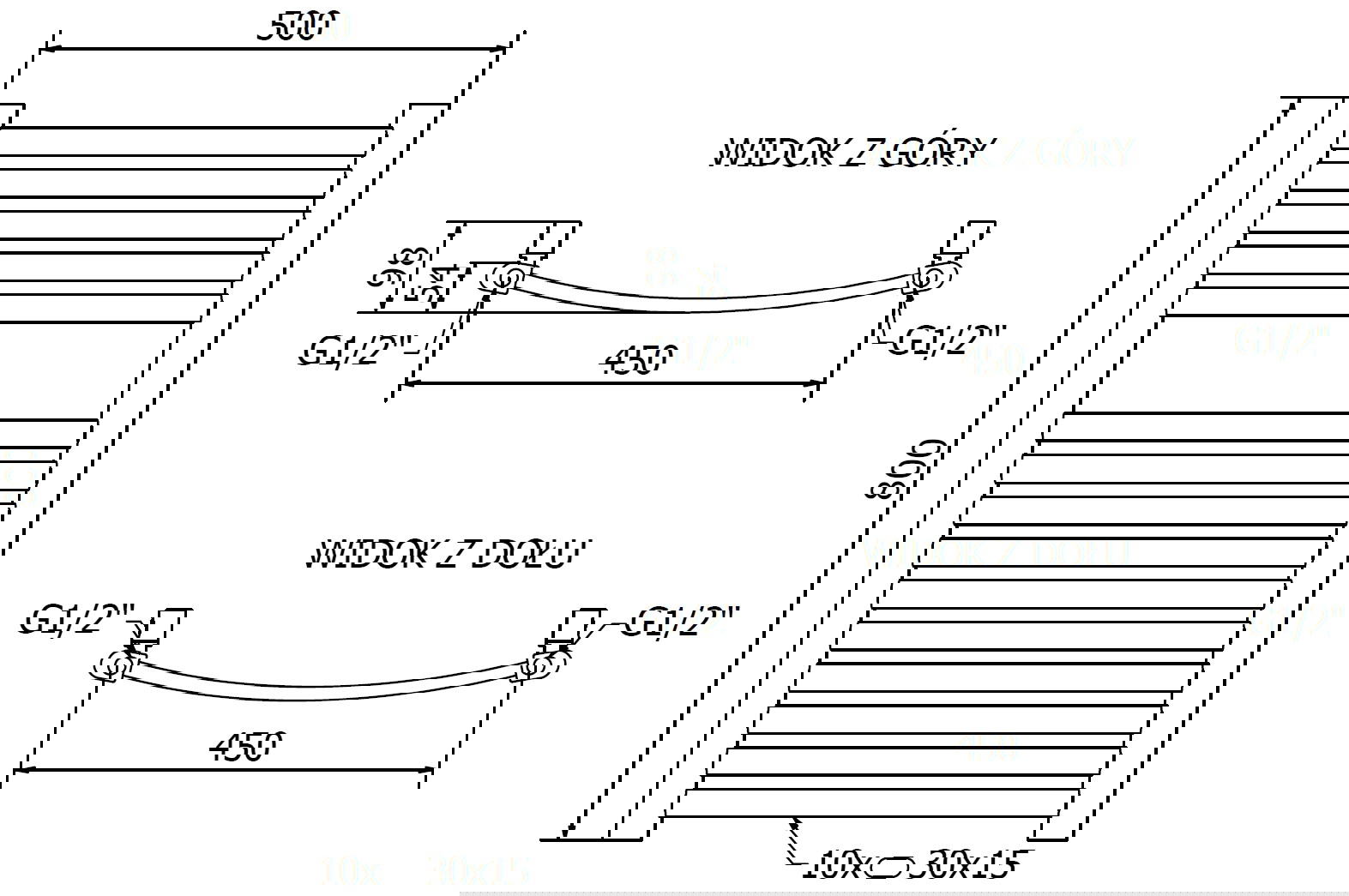 - 4xG ½″ aan de boven- en onderkant aan de rechter- of linkerzijde