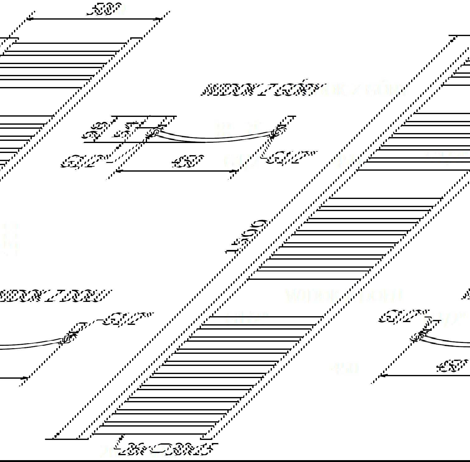 - 4xG ½″ van boven en beneden aan de rechter- of linkerzijde