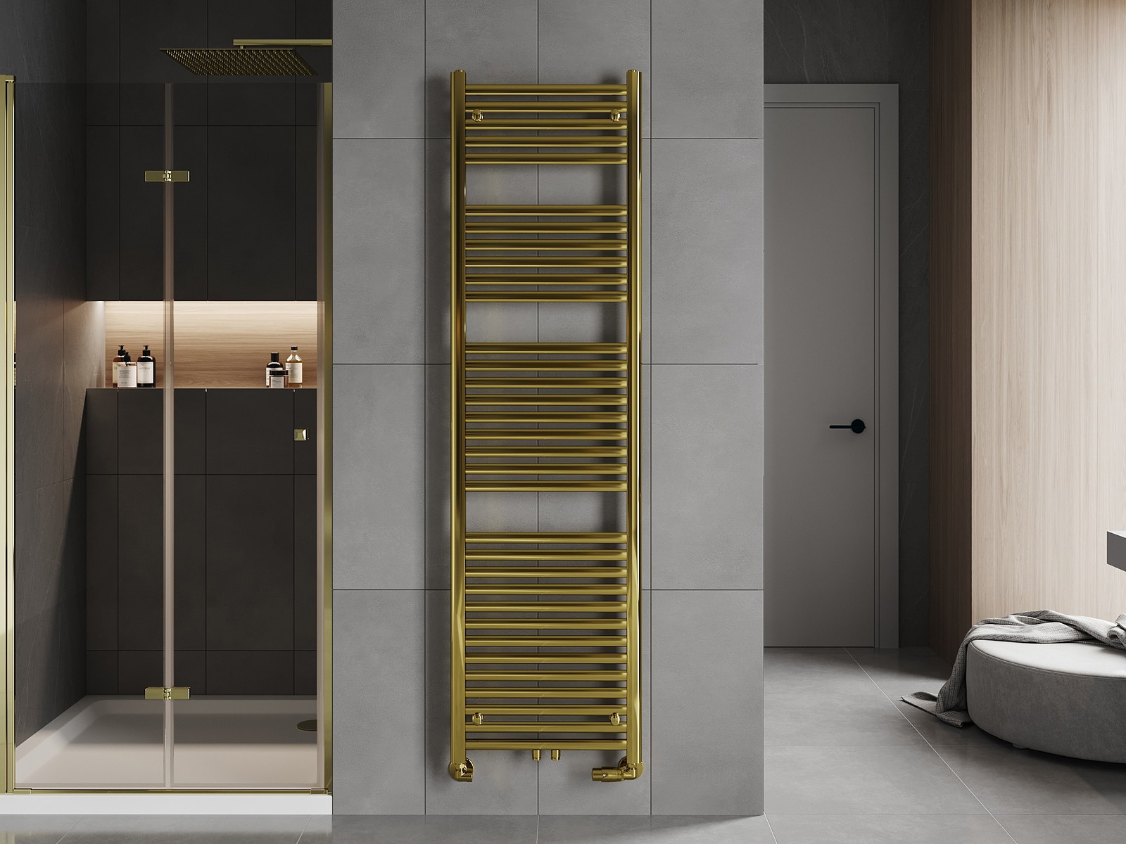 Mexen Hades is een elegante badkamerradiator met afmetingen van 1800 x 500 mm, die 675 W aan vermogen biedt in een gouden afwerking. Gemaakt van staal, gekenmerkt door duurzaamheid en corrosiebestendigheid dankzij de hoogwaardige laklaag. Het weegt 13,74 kg en de maximale werktemperatuur is 95 °C. Biedt twee aansluitafstanden en de mogelijkheid om een verwarmingselement te installeren, wat de functionaliteit vergroot. Dankzij de klasse A1 reactie op vuur biedt het veiligheid bij gebruik. Ideale keuze voor elke moderne badkamer.