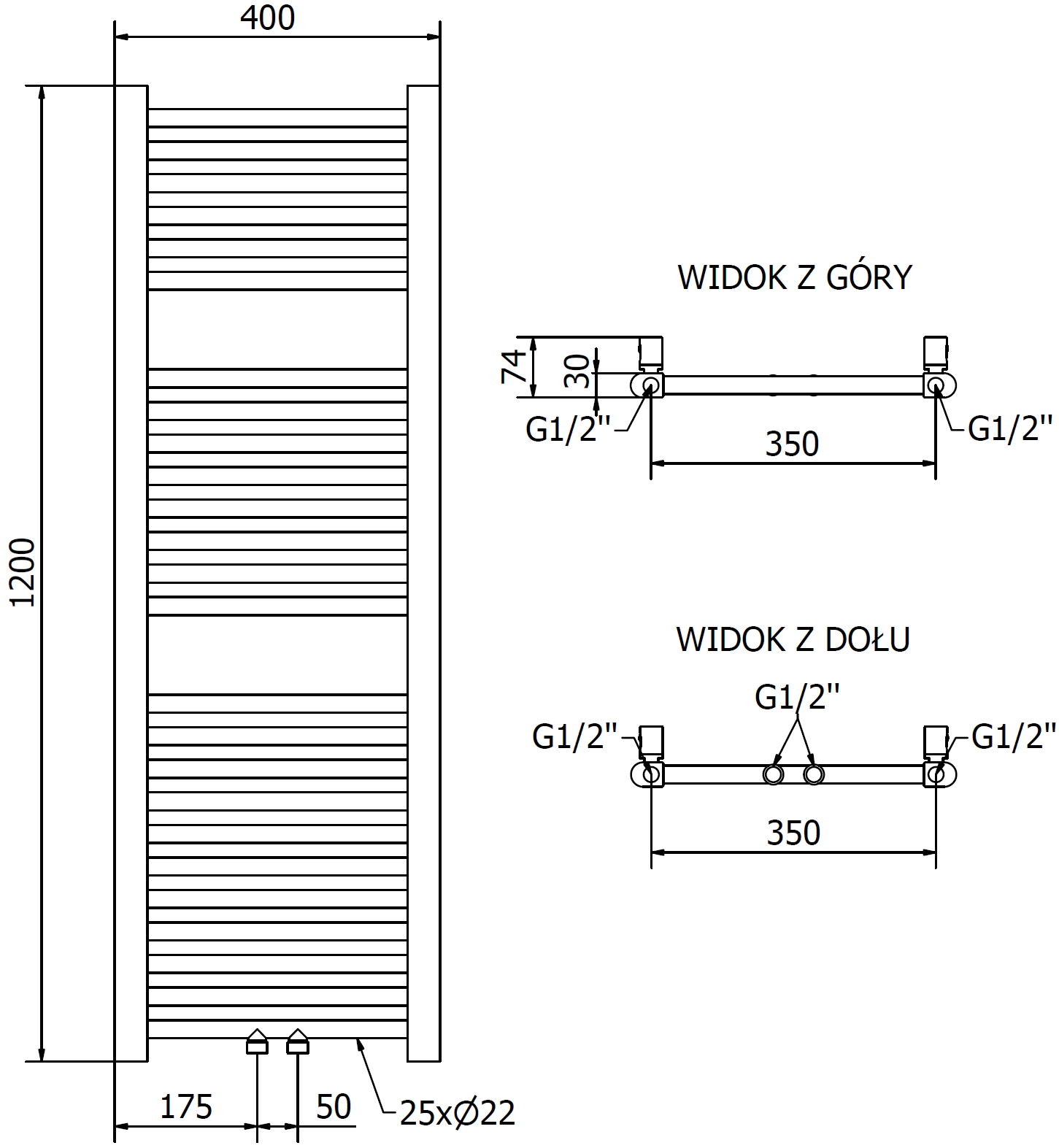 - 2xG ½″ midden