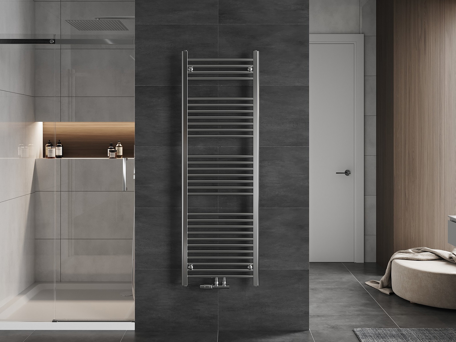 Mexen Mars is een moderne badkamerradiator die elegantie en functionaliteit combineert. Met afmetingen van 1500 x 500 mm en een vermogen van 494 W is hij perfect geschikt voor elke badkamer. Gemaakt van duurzaam staal bedekt met een corrosiebestendige chromen laag, garandeert hij jarenlang betrouwbaarheid. Hij biedt verschillende aansluitmogelijkheden, inclusief onder- en middenaansluitingen, wat de installatie flexibeler maakt. Met een maximale bedrijfstemperatuur van 95 °C en een werkdruk van 0,6 MPa voldoet hij aan de hoogste veiligheidsnormen. Inclusief ophangbeugels, montagemateriaal, afsluitdoppen en ontluchter, wat de installatie vergemakkelijkt.