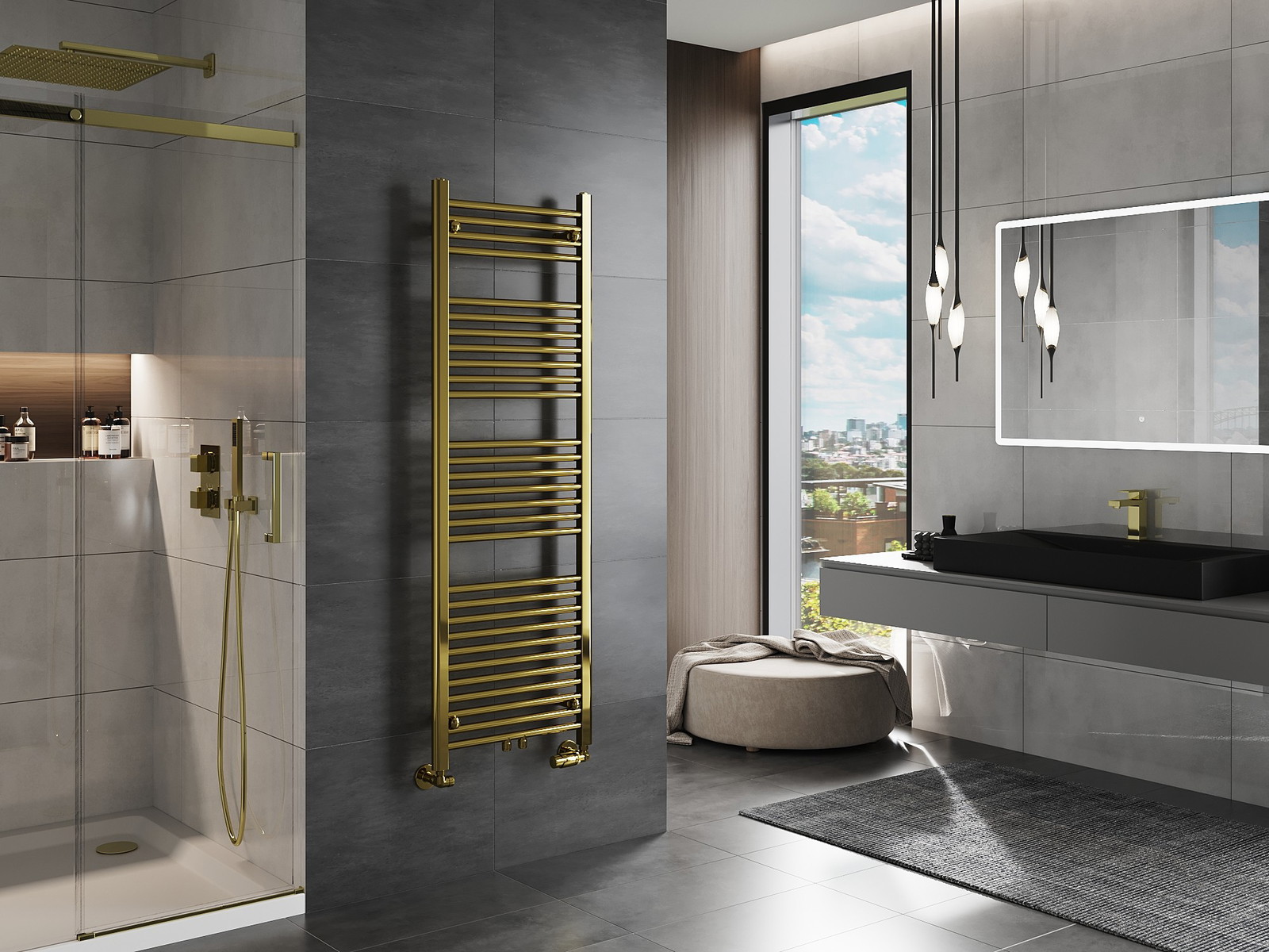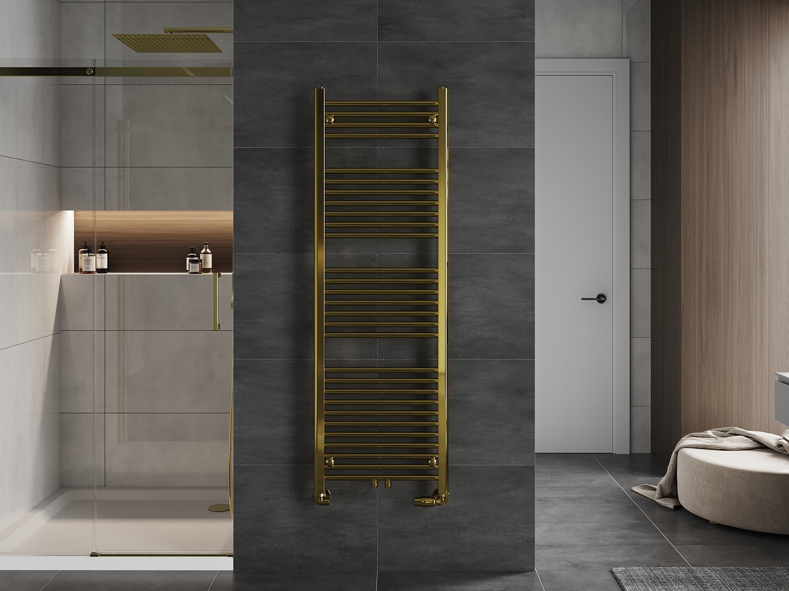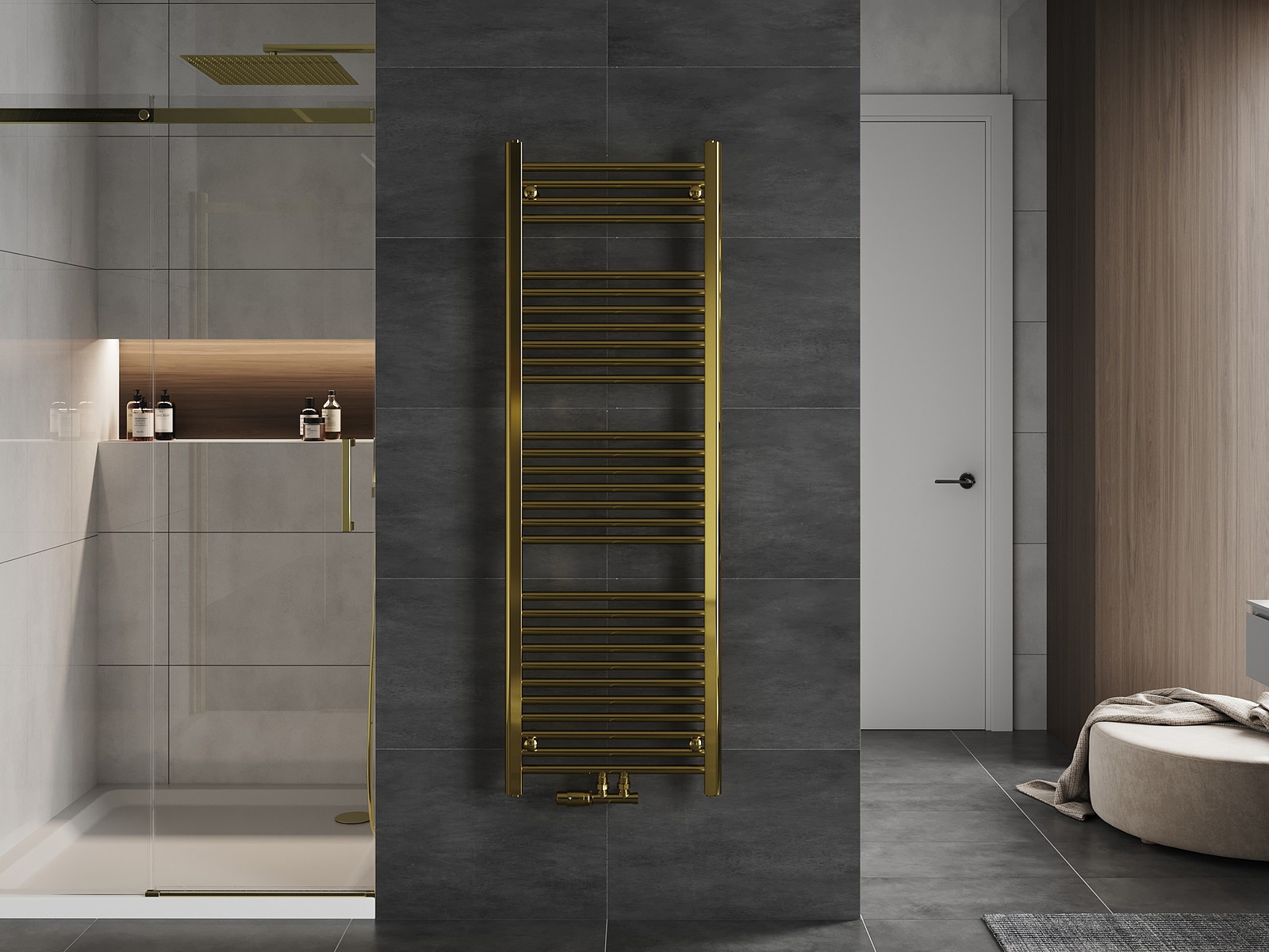Mexen Mars is een elegante badkamerradiator met indrukwekkende afmetingen van 1500x500 mm en een verwarmingsvermogen van 494 W. Gemaakt van duurzaam staal, afgewerkt met een goudkleurige laklaag die bestand is tegen corrosie. Het kenmerkt zich door hoogwaardige afwerking en effectieve reactievermogen op vuur klasse A1. Door de diverse aansluitmogelijkheden (2xG ½″ midden, 4xG ½″) en maximale werktemperatuur van 95 °C is het ideaal voor elke badkamer. Comfortabel te monteren met de meegeleverde montagemateriaalset.
