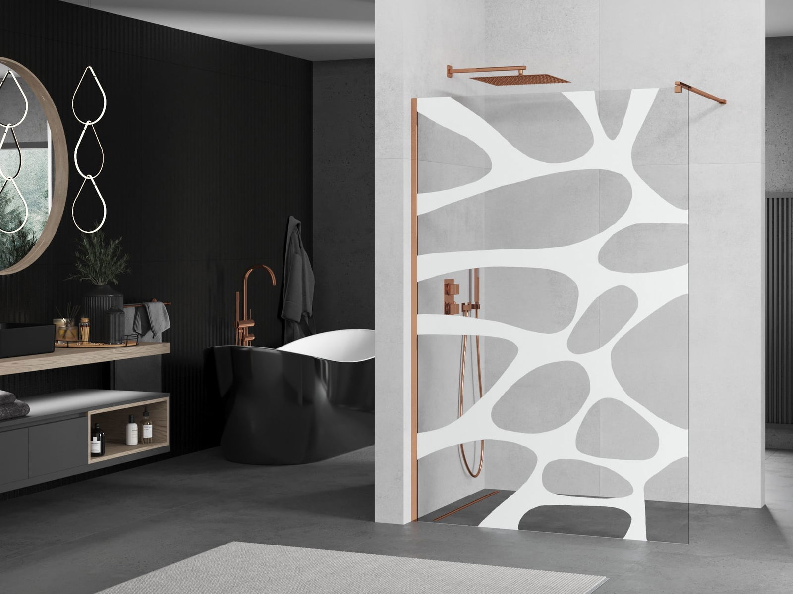 Mexen Kioto douchewand Walk-in 110 x 200 cm, witte golf 8 mm, roze goud - 800-110-101-60-97