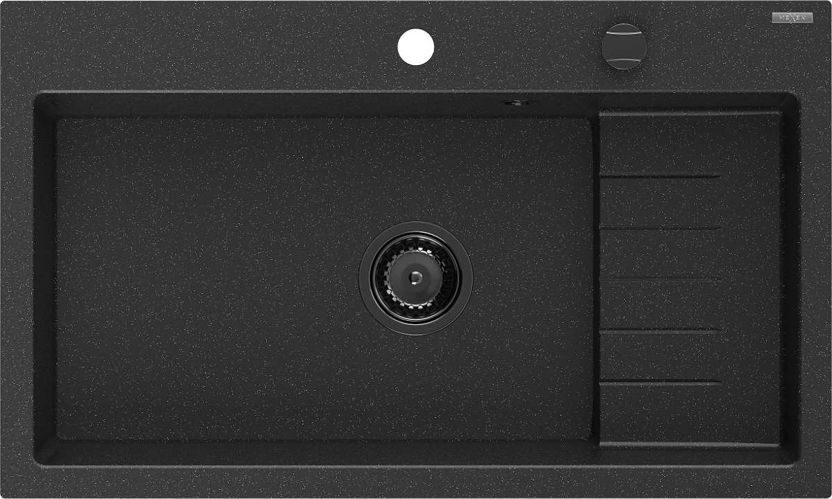 Mexen Omar granieten gootsteen 1-komor 800 x 480 mm, zwart/zilveren metallic, zwarte sifon - 6520801005-73-B