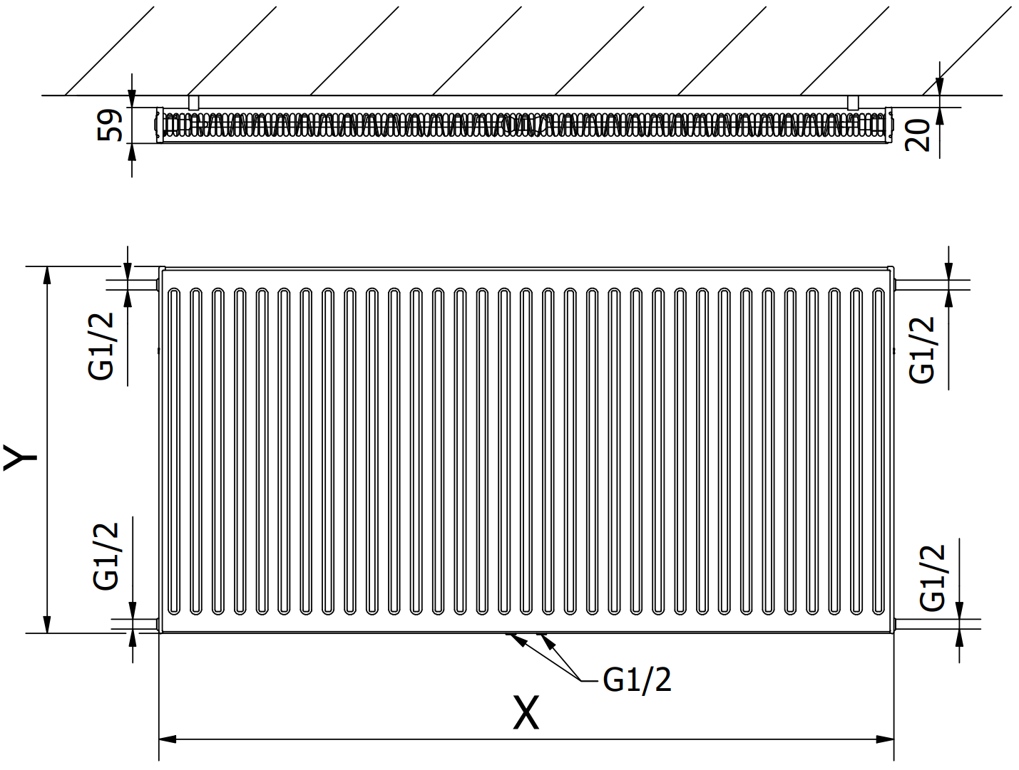 Afstand tussen verticale waterkanalen: 33,3 mm