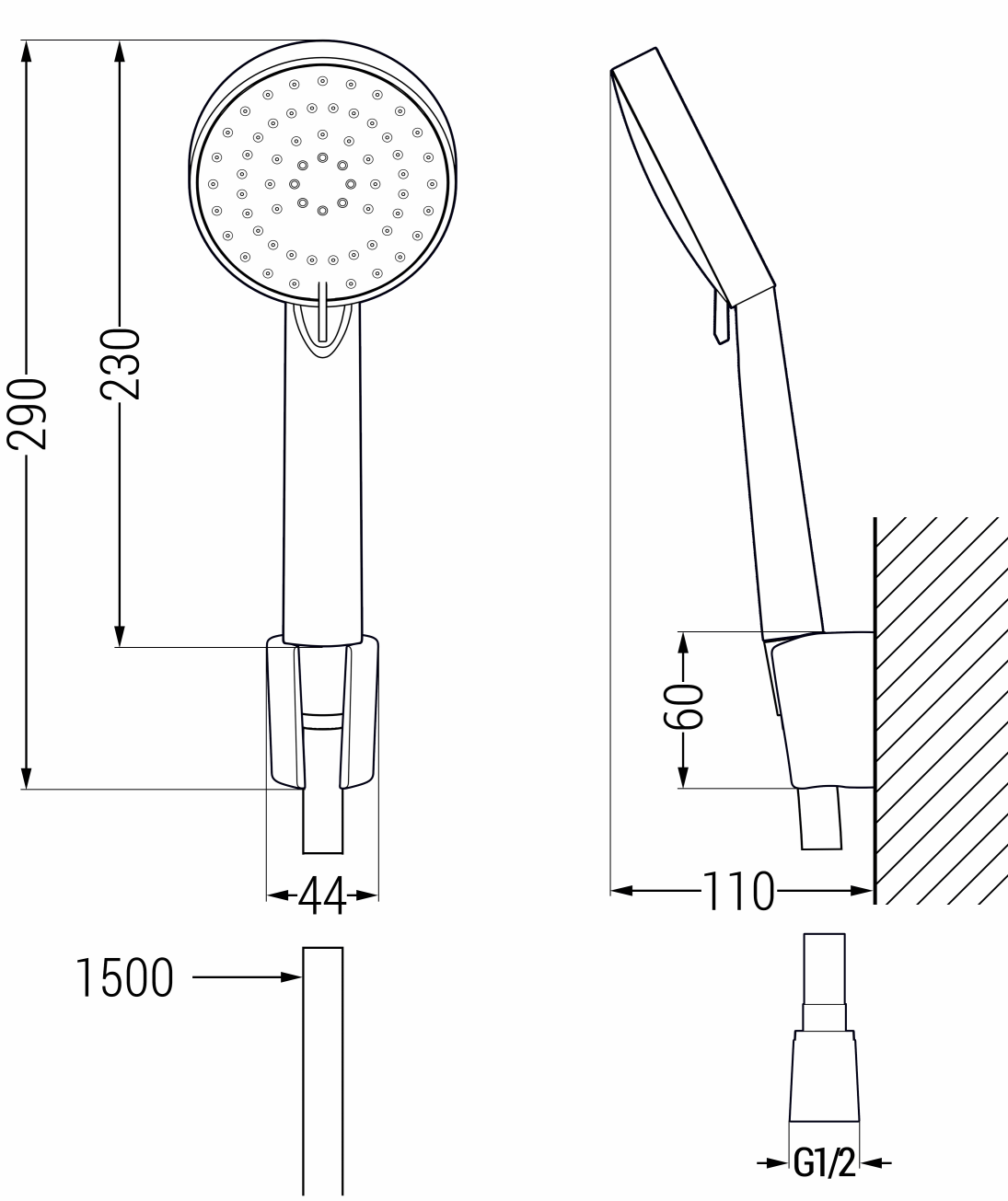 Hoogte van de handdouche: 230 mm