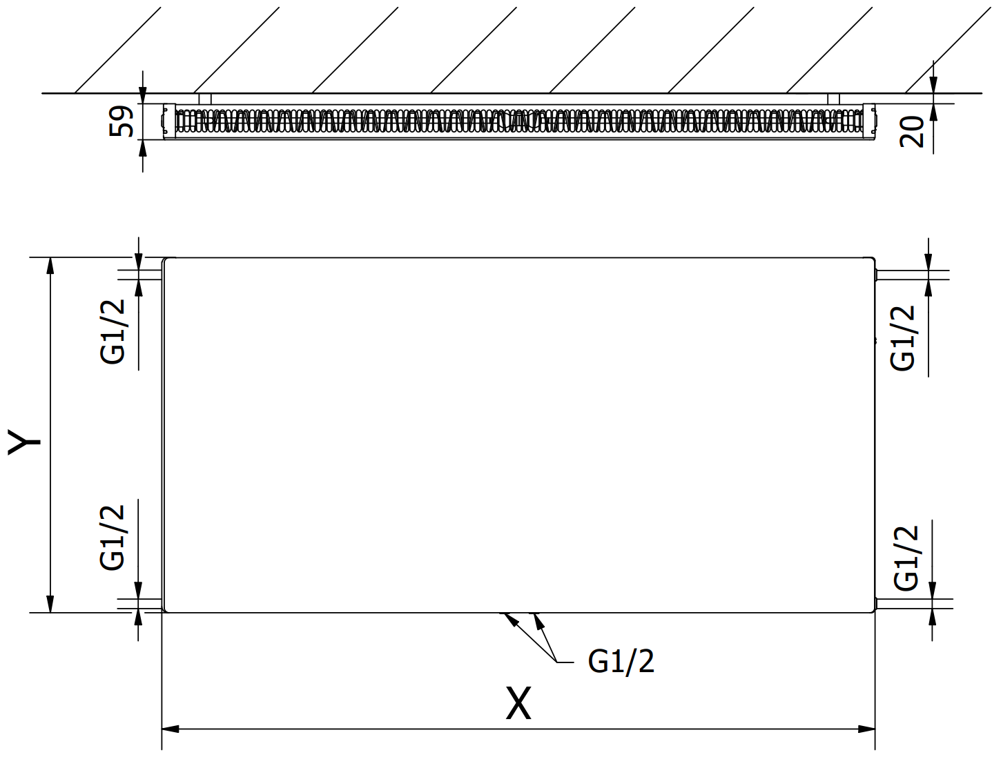 De foto's tonen de radiator in de afmeting 600 x 1200 mm.