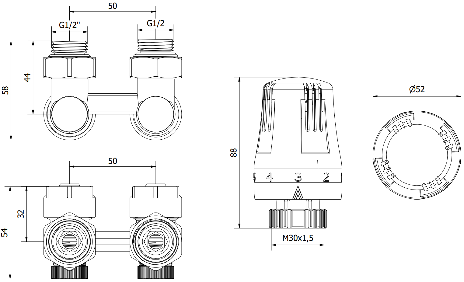 Aansluitdiameter: G 1/2" en pex 16x2 mm