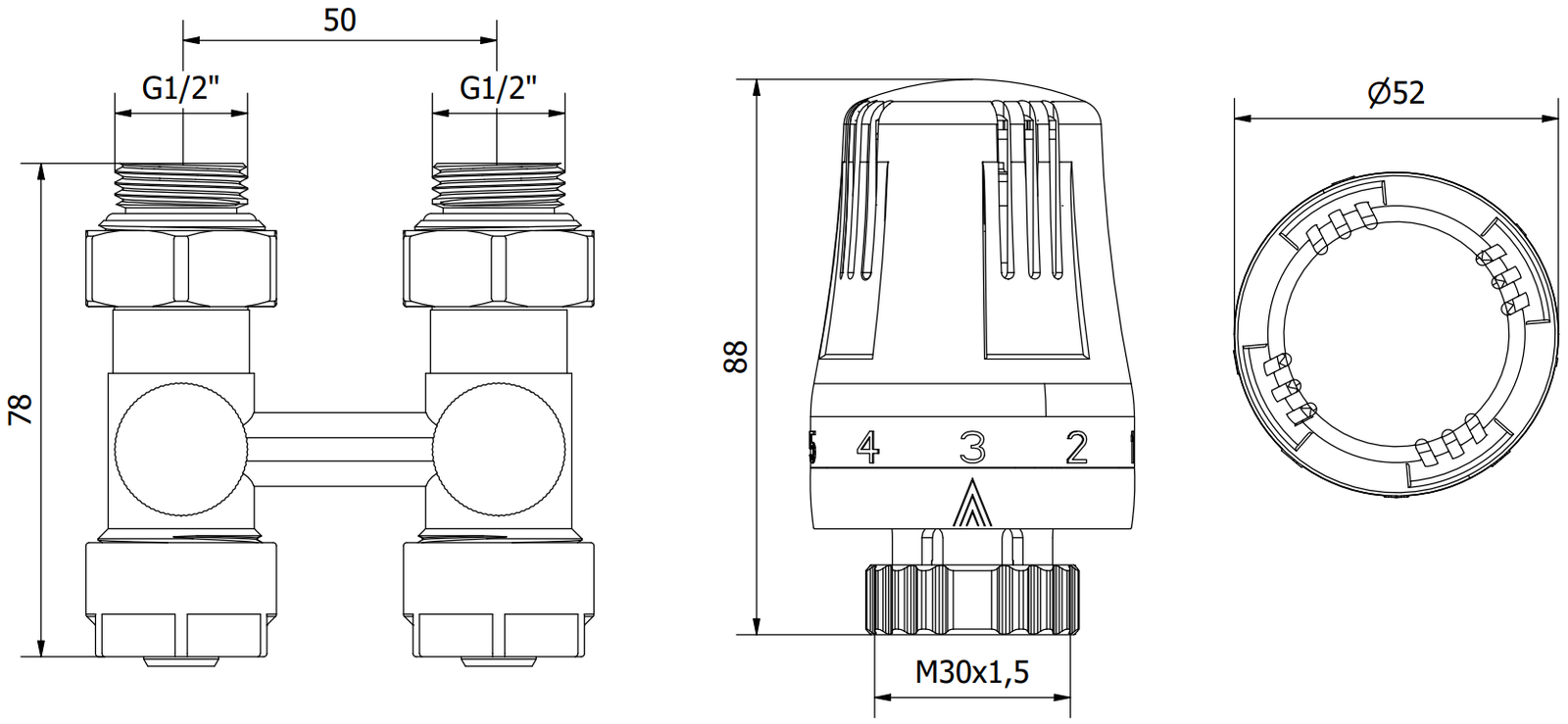 Aansluitdiameter: G 1/2" en PEX 16x2 mm