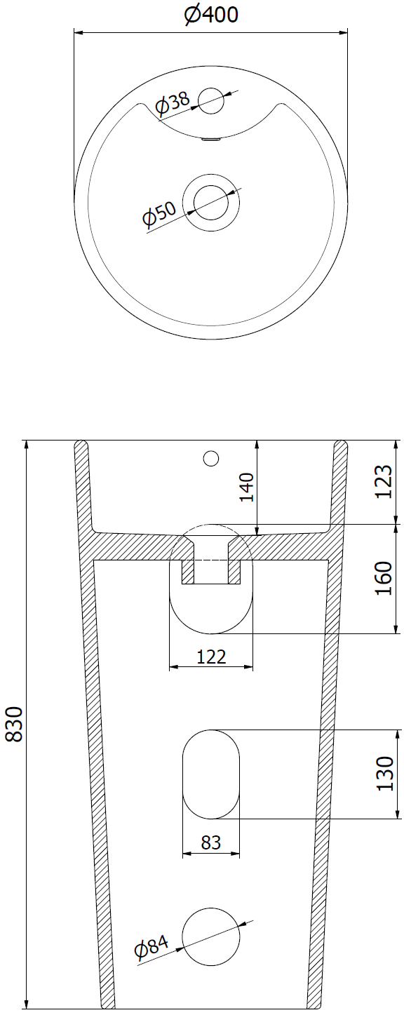 De wastafel heeft een gat waarin we een kraan kunnen installeren. Dit bespaart kostbare ruimte in de badkamer en benadrukt de esthetiek ervan. Deze oplossing maakt het ook gemakkelijker om de omgeving rond de wastafel schoon te houden.
