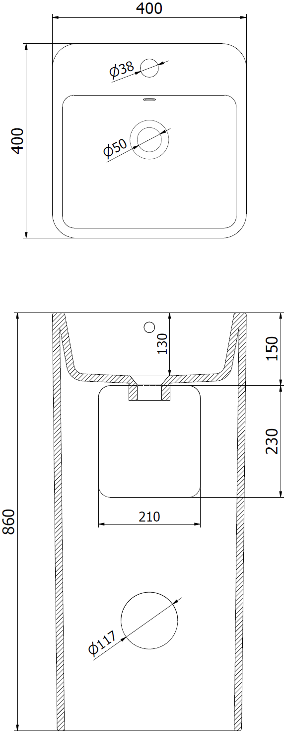 De wastafel heeft een gat waarin we een kraan kunnen installeren. Dit bespaart kostbare ruimte in de badkamer en benadrukt de esthetiek ervan. Deze oplossing maakt het ook gemakkelijker om de omgeving rond de wastafel schoon te houden.