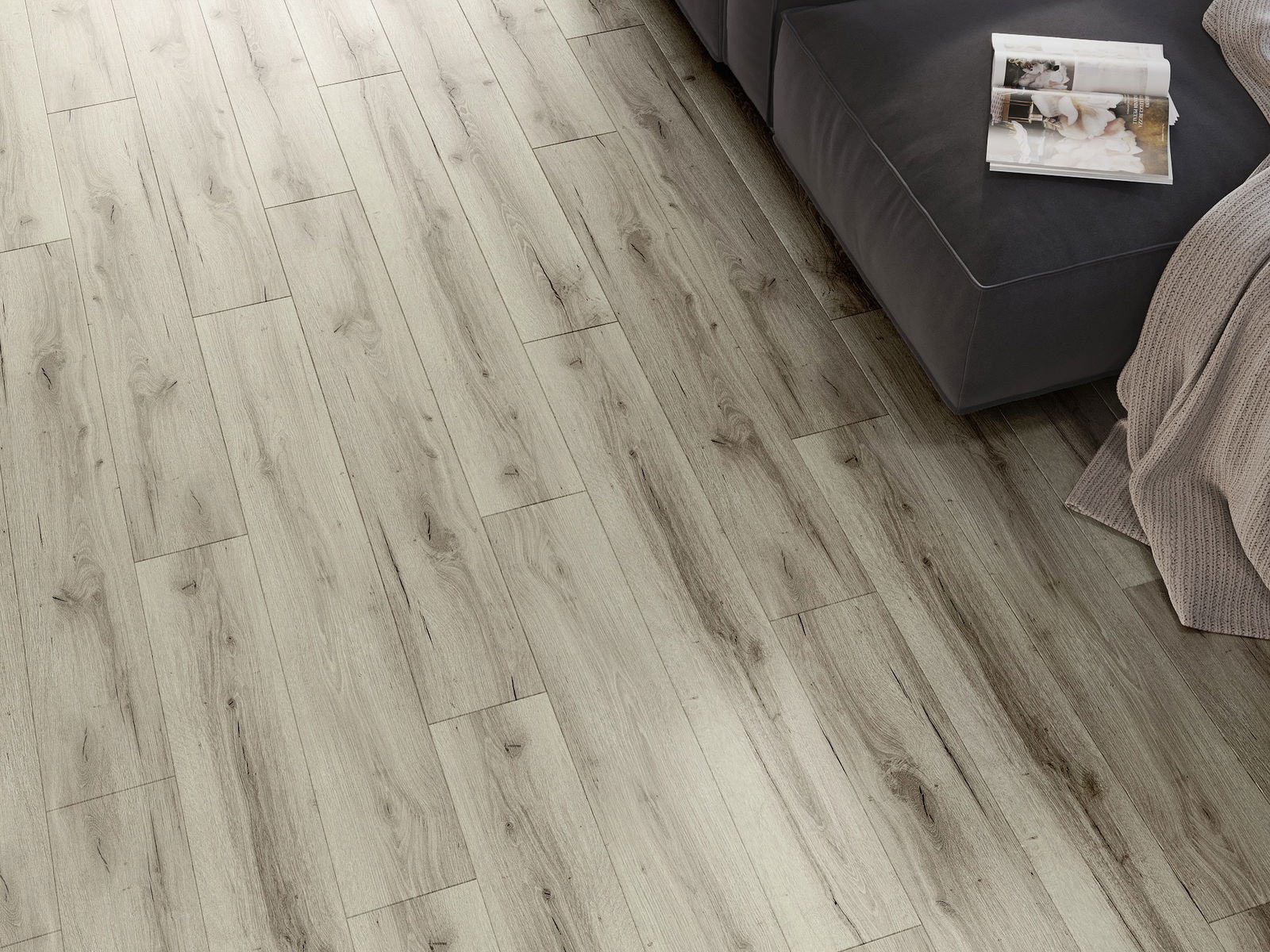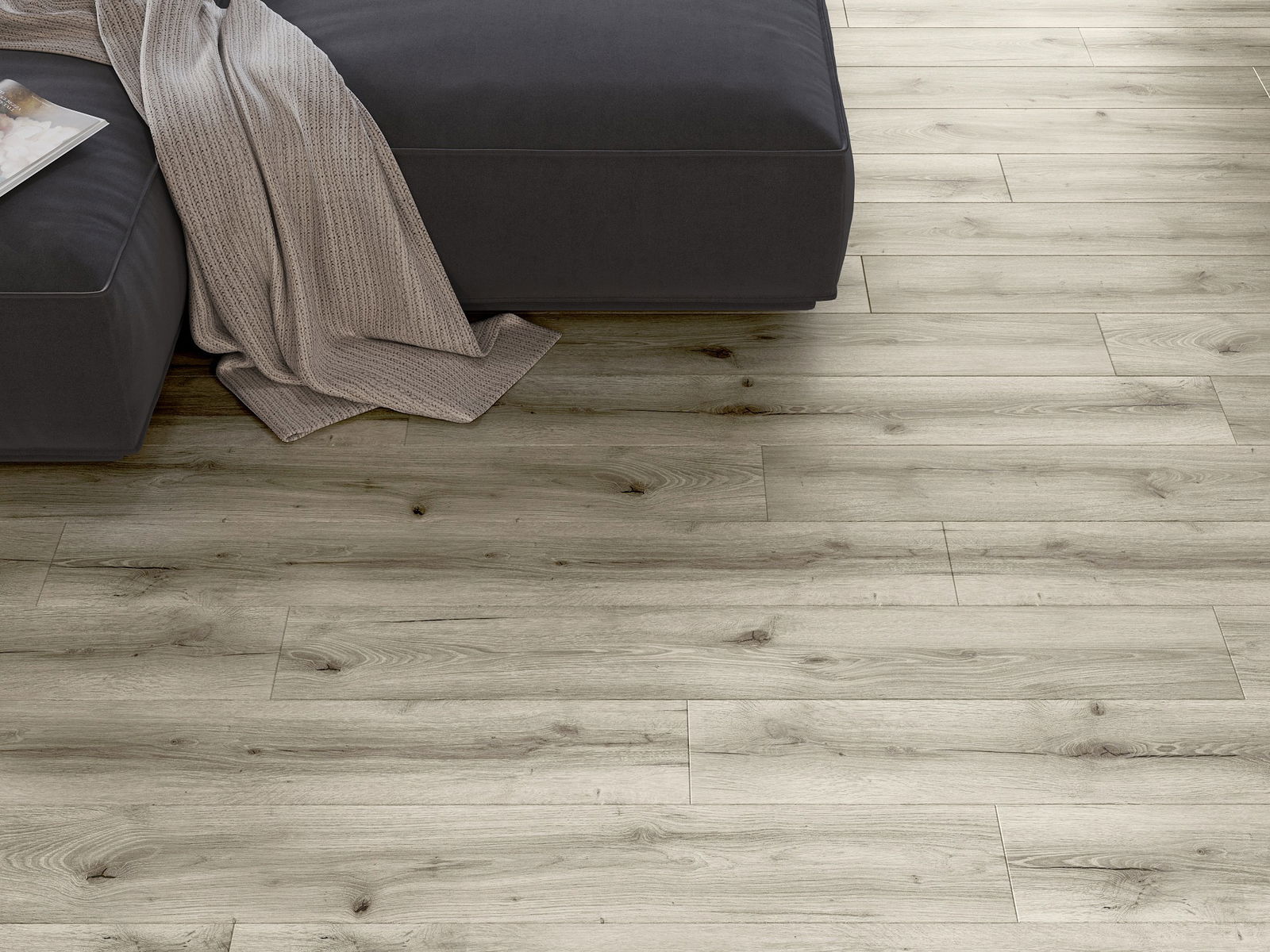 De panelen hebben een vierzijdige afschuining – elke zijde is na installatie gefreesd om een V-vormige voeg te creëren. Dit ontwerp geeft de vloer een uitgesprokener structuur, diepte en esthetisch karakter. Dit effect komt vooral tot zijn recht in moderne interieurs, waar details de unieke uitstraling van het interieur benadrukken.