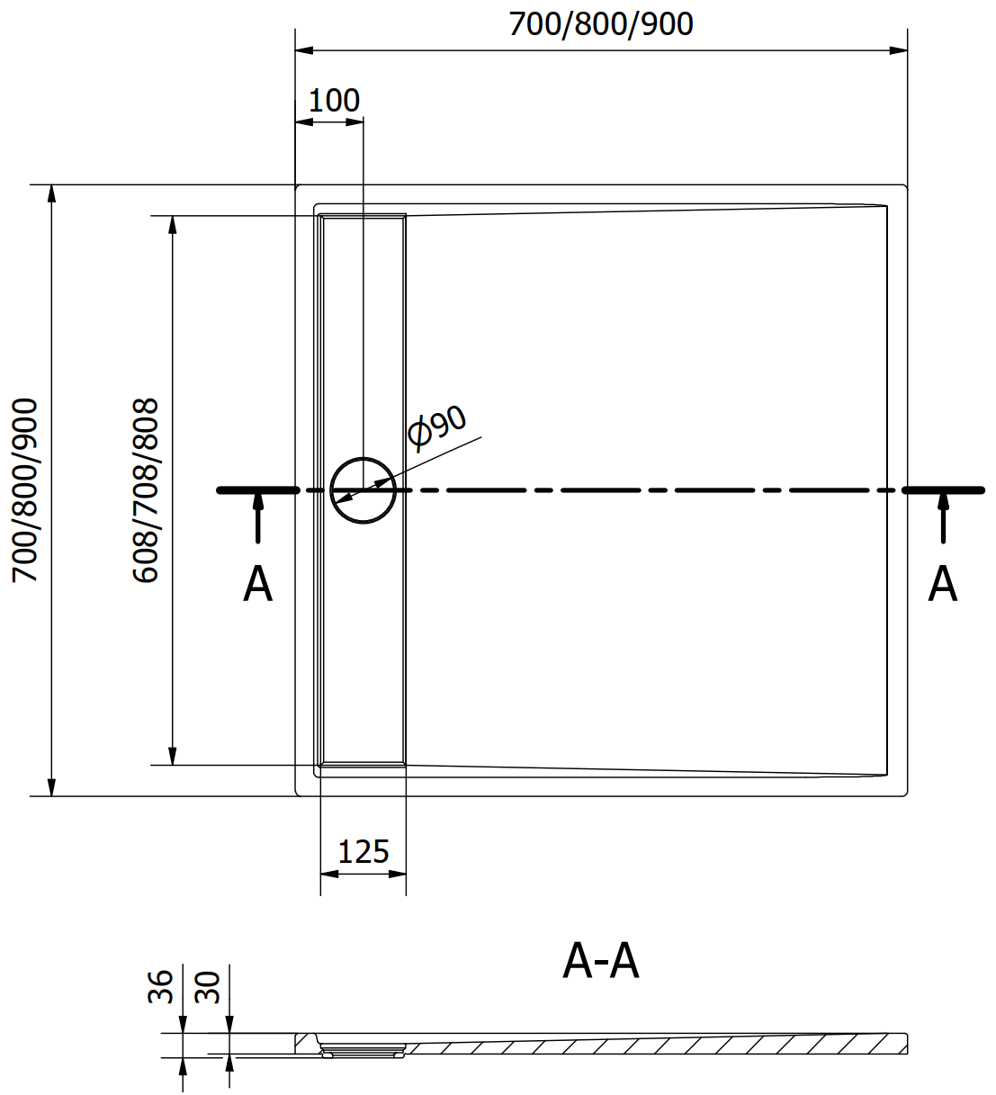 De douchebak is zo ontworpen dat het water vrij kan weglopen in de richting van de afvoer. Het zorgt voor een snelle en efficiënte afvoer van water van het oppervlak van de douchebak, waardoor het ontstaan van plassen en het overstromen van de badkamer wordt voorkomen.