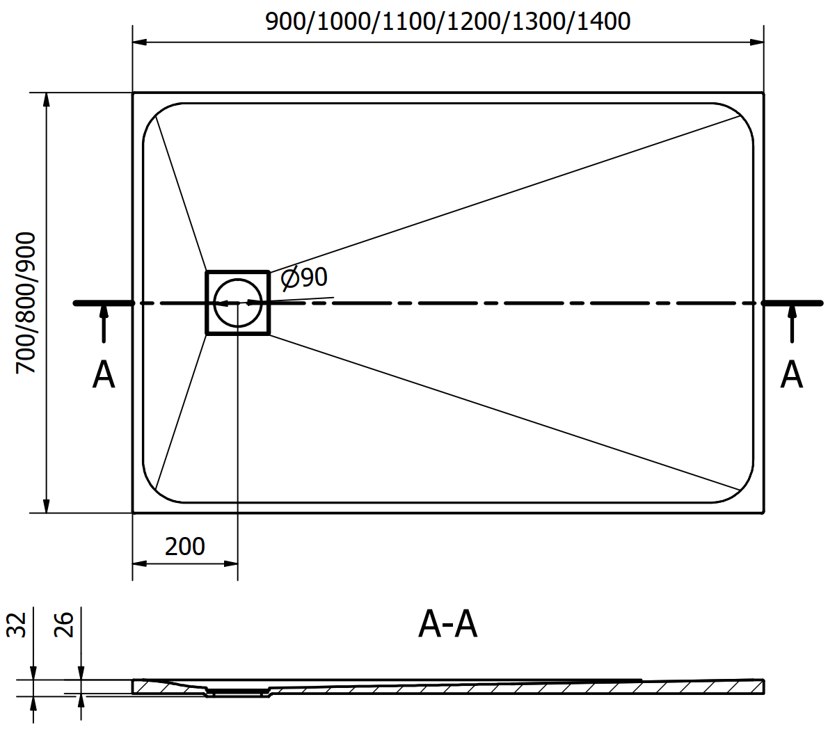 De douchebak is zo ontworpen dat het water vrij kan weglopen in de richting van de afvoer. Het zorgt voor een snelle en efficiënte afvoer van water van het oppervlak van de douchebak, waardoor het ontstaan van plassen en het overstromen van de badkamer wordt voorkomen.