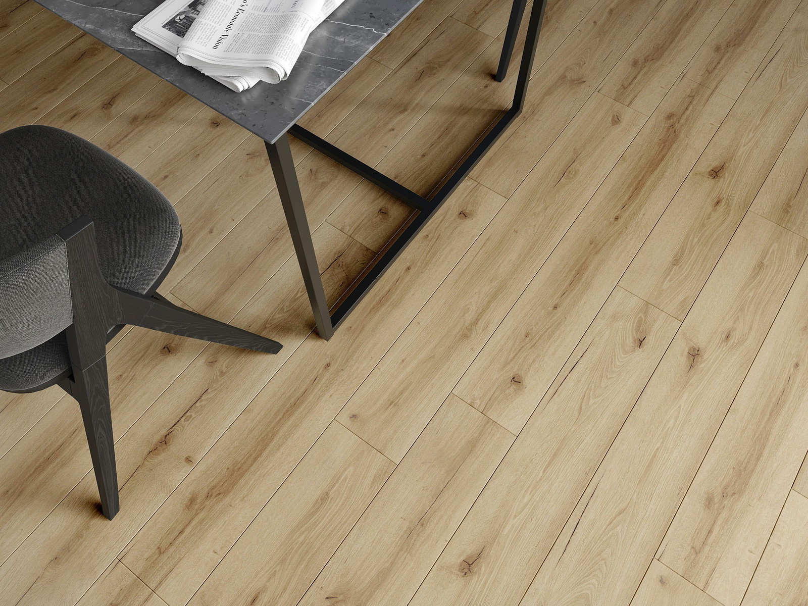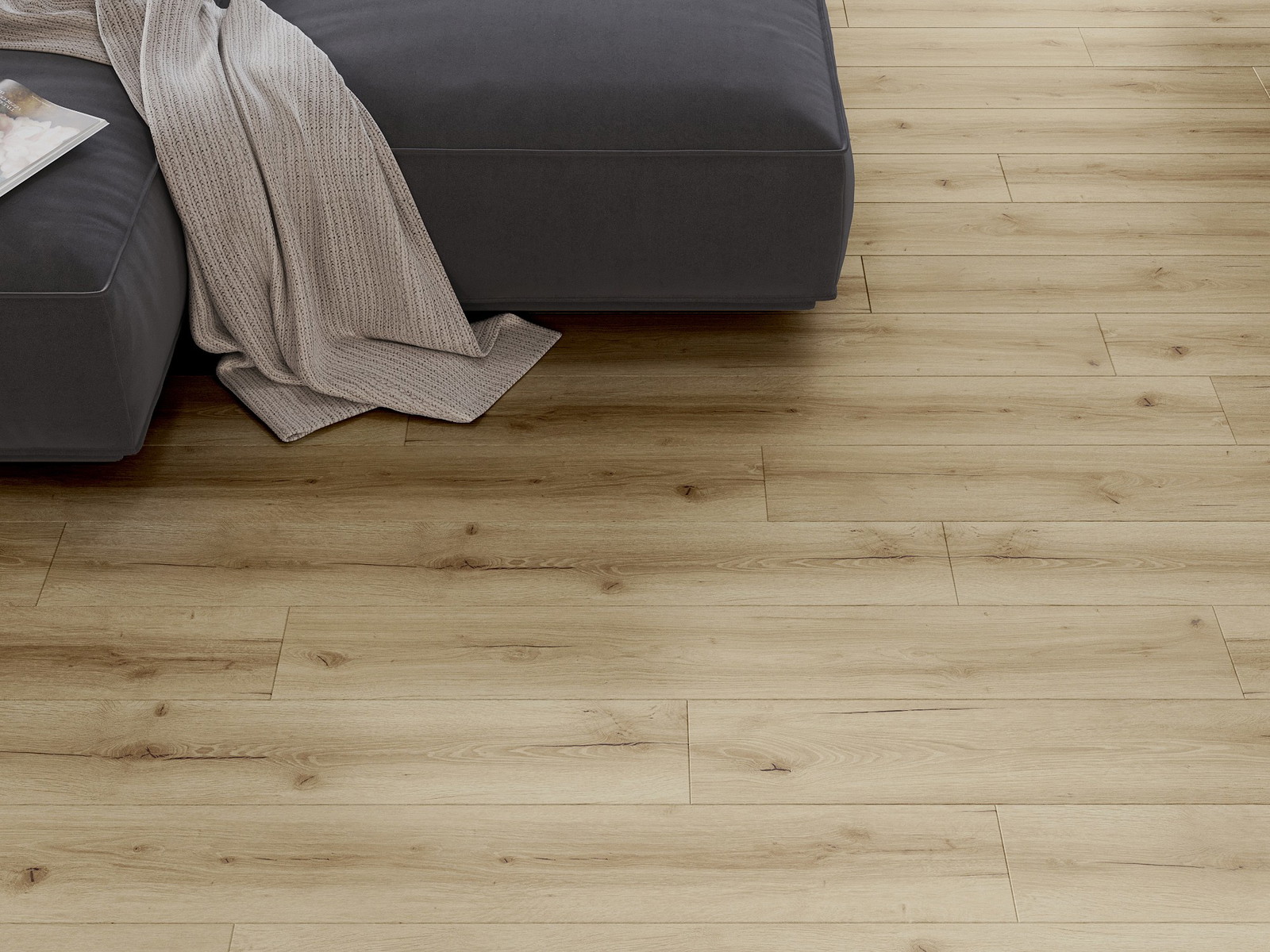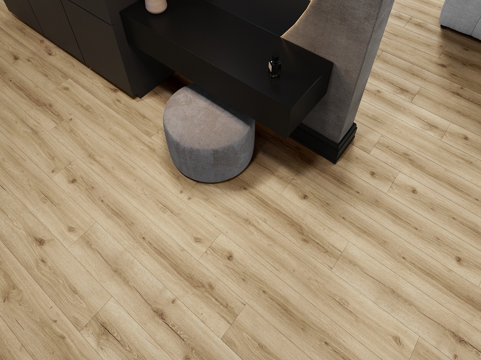 De panelen hebben een 4-zijdige voeg - elke zijde is zo gefreesd dat er bij het leggen een V-vormige verbinding ontstaat. Dit design geeft de vloer een duidelijkere structuur, waardoor het diepte en een esthetisch karakter krijgt. Dit effect wordt vooral gewaardeerd in moderne interieurs, waar details de unieke uitstraling van het interieur benadrukken.