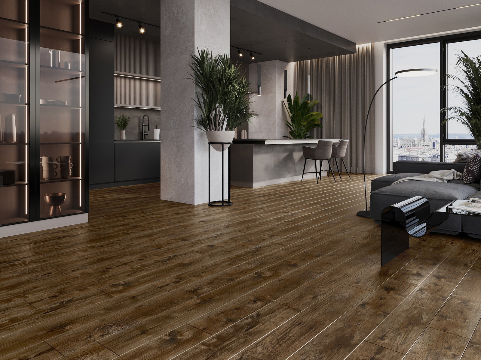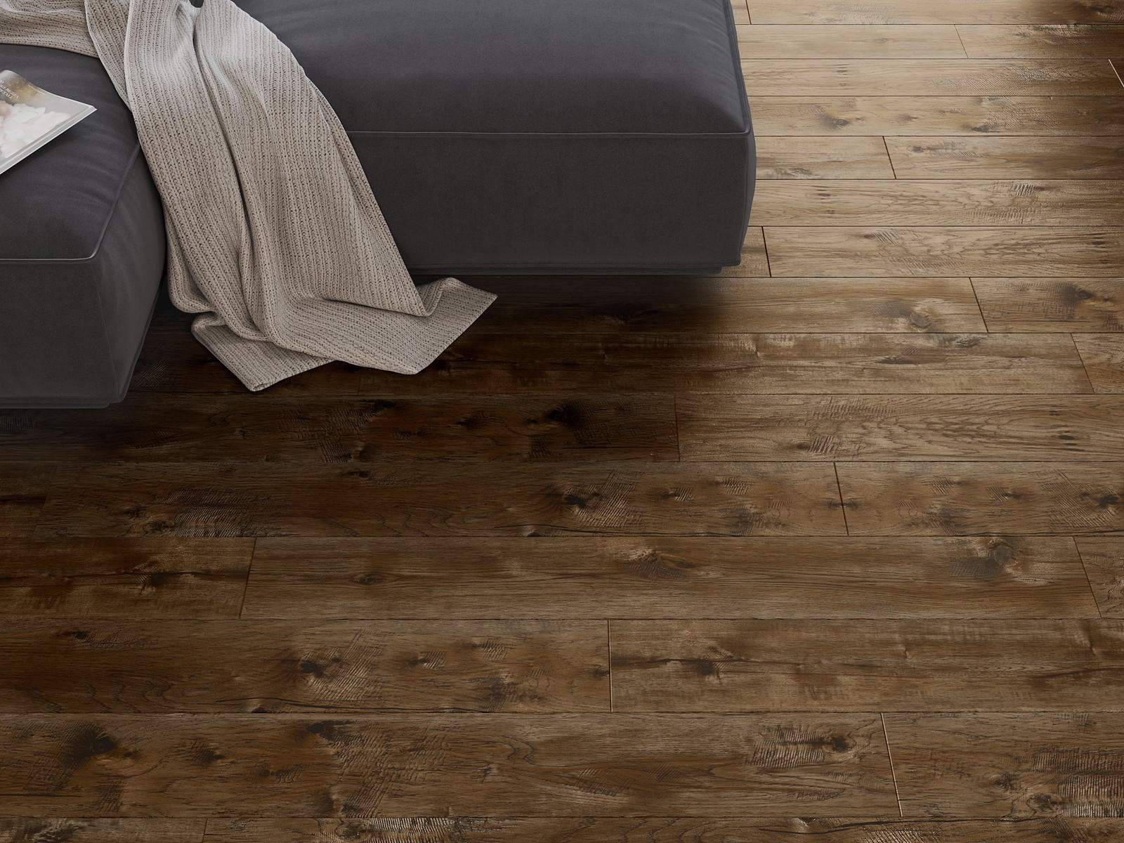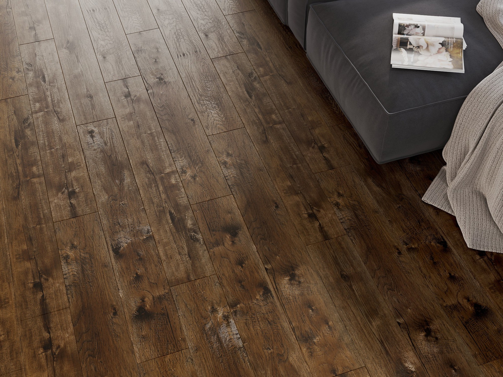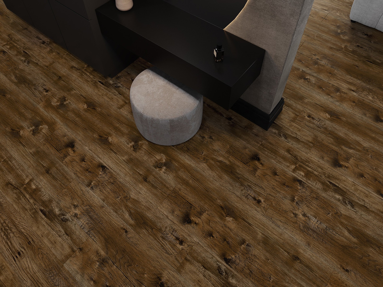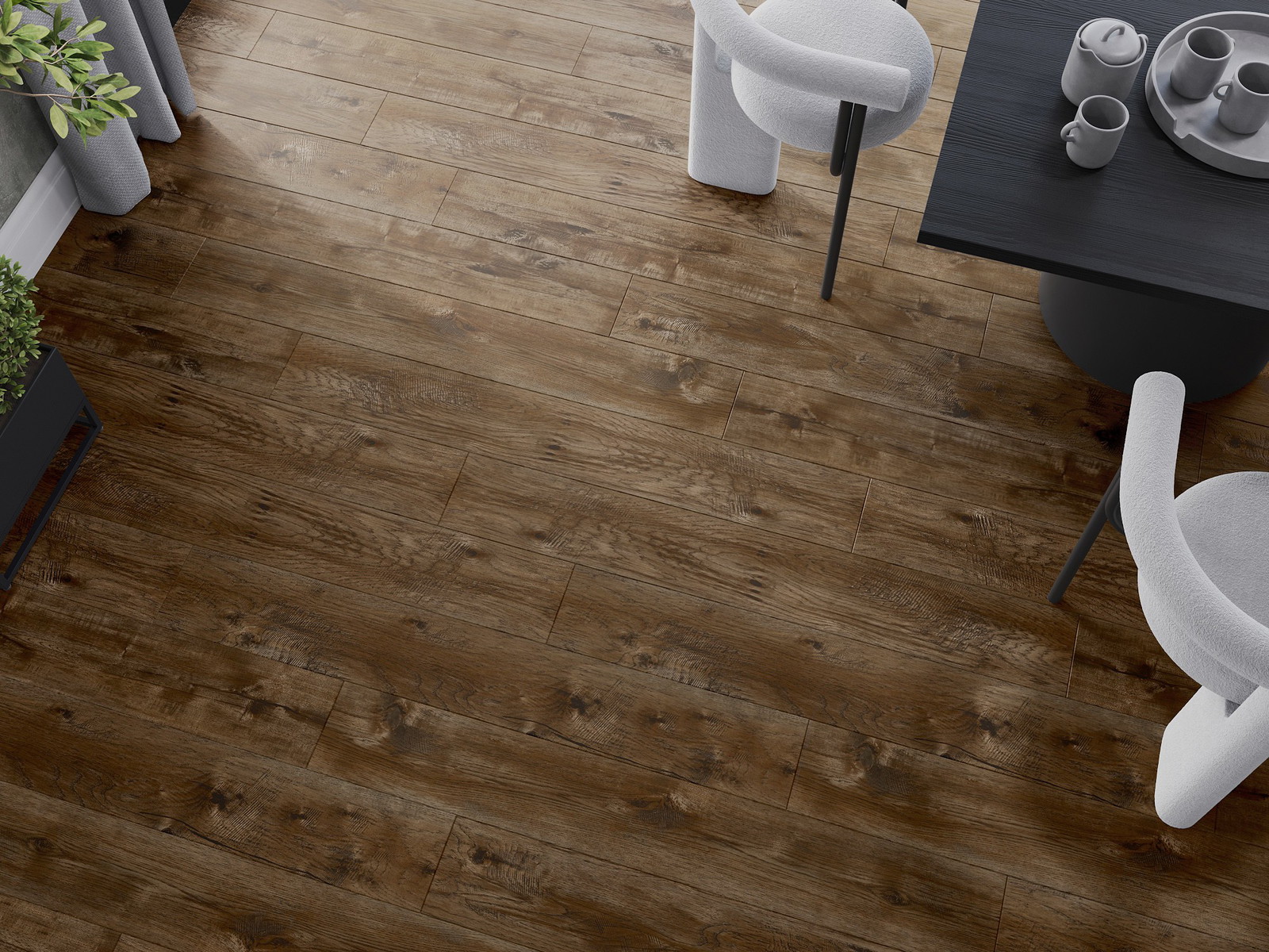 De panelen hebben een 4-zijdige voeg - elke zijde is zo gefreesd dat er bij het leggen een V-vormige verbinding ontstaat. Dit design geeft de vloer een duidelijkere structuur, waardoor het diepte en een esthetisch karakter krijgt. Dit effect wordt vooral gewaardeerd in moderne interieurs, waar details de unieke uitstraling van het interieur benadrukken.