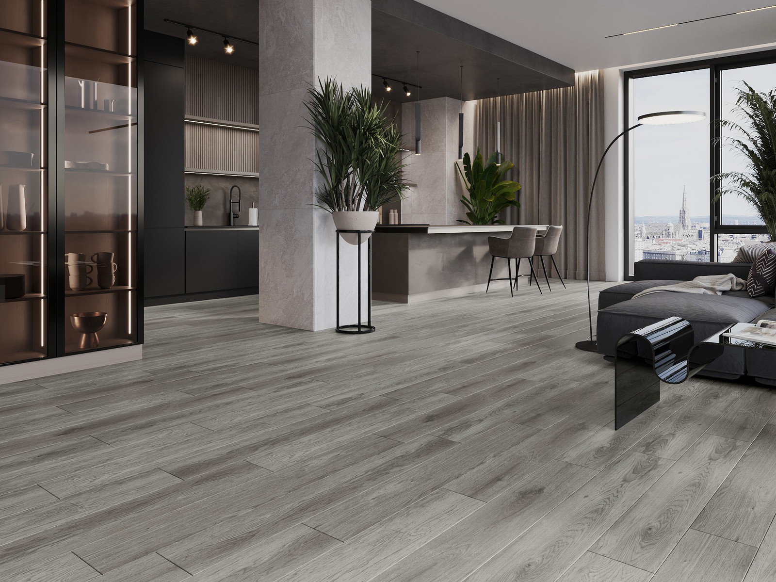 De panelen hebben een 4-zijdige voeg - elke zijde is zo gefreesd dat er bij het leggen een V-vormige verbinding ontstaat. Dit design geeft de vloer een duidelijkere structuur, waardoor het diepte en een esthetisch karakter krijgt. Dit effect wordt vooral gewaardeerd in moderne interieurs, waar details de unieke uitstraling van het interieur benadrukken.