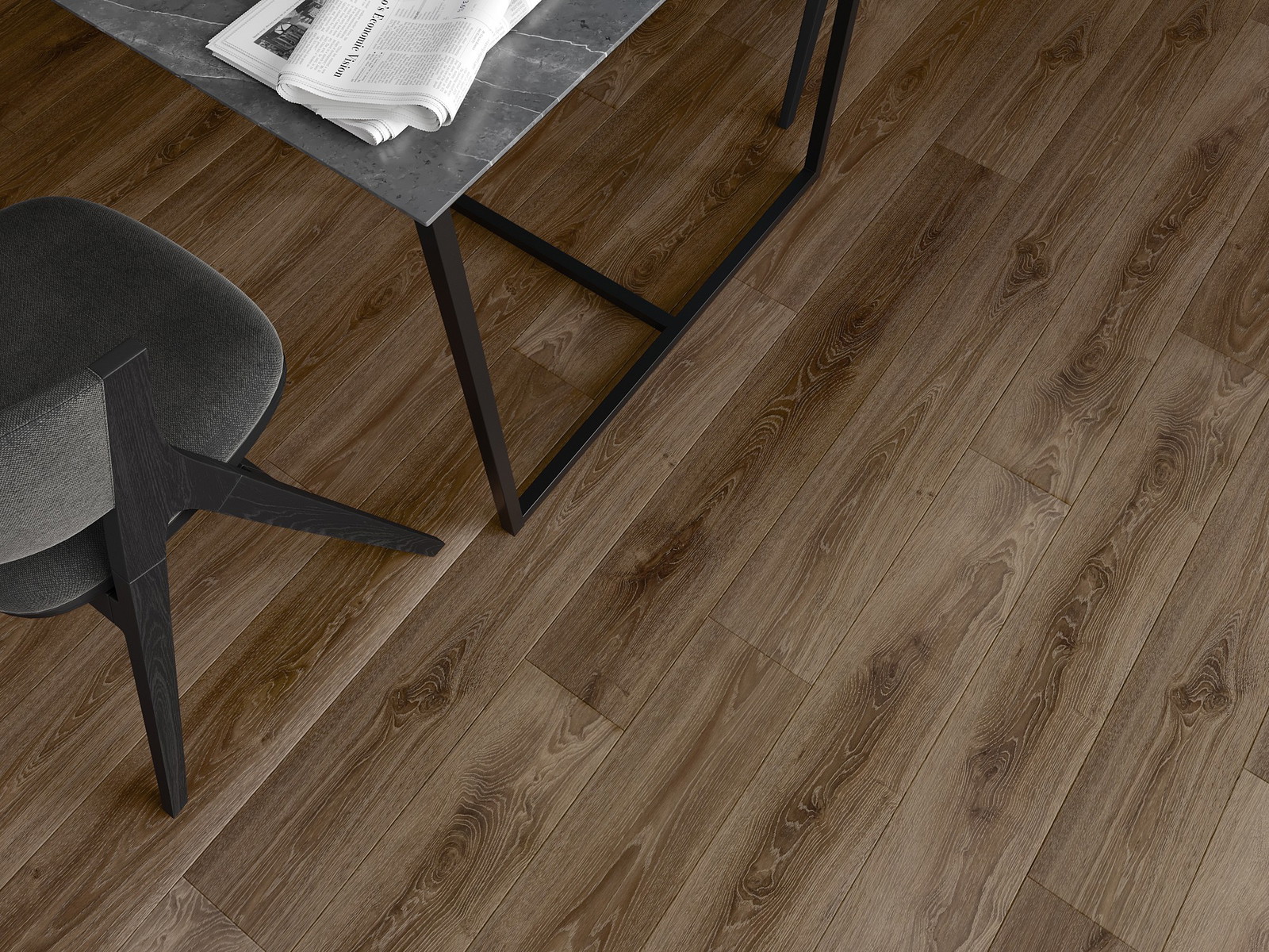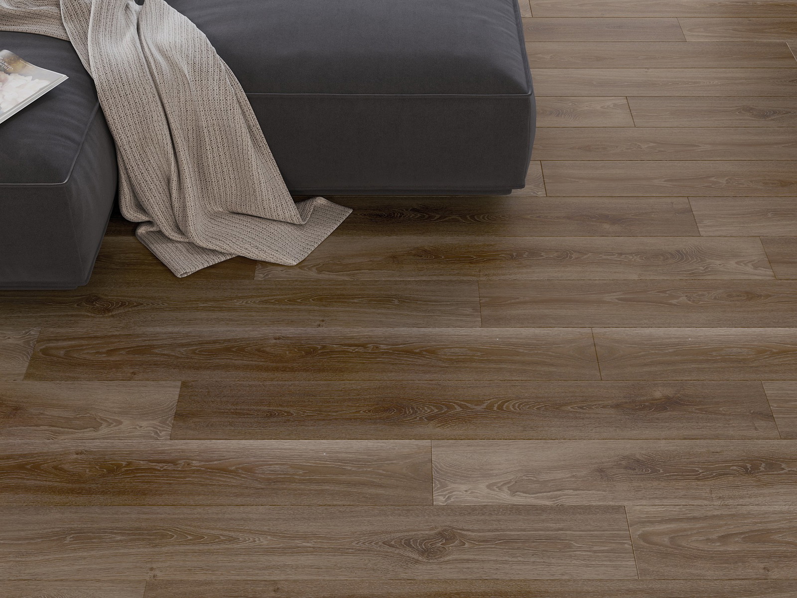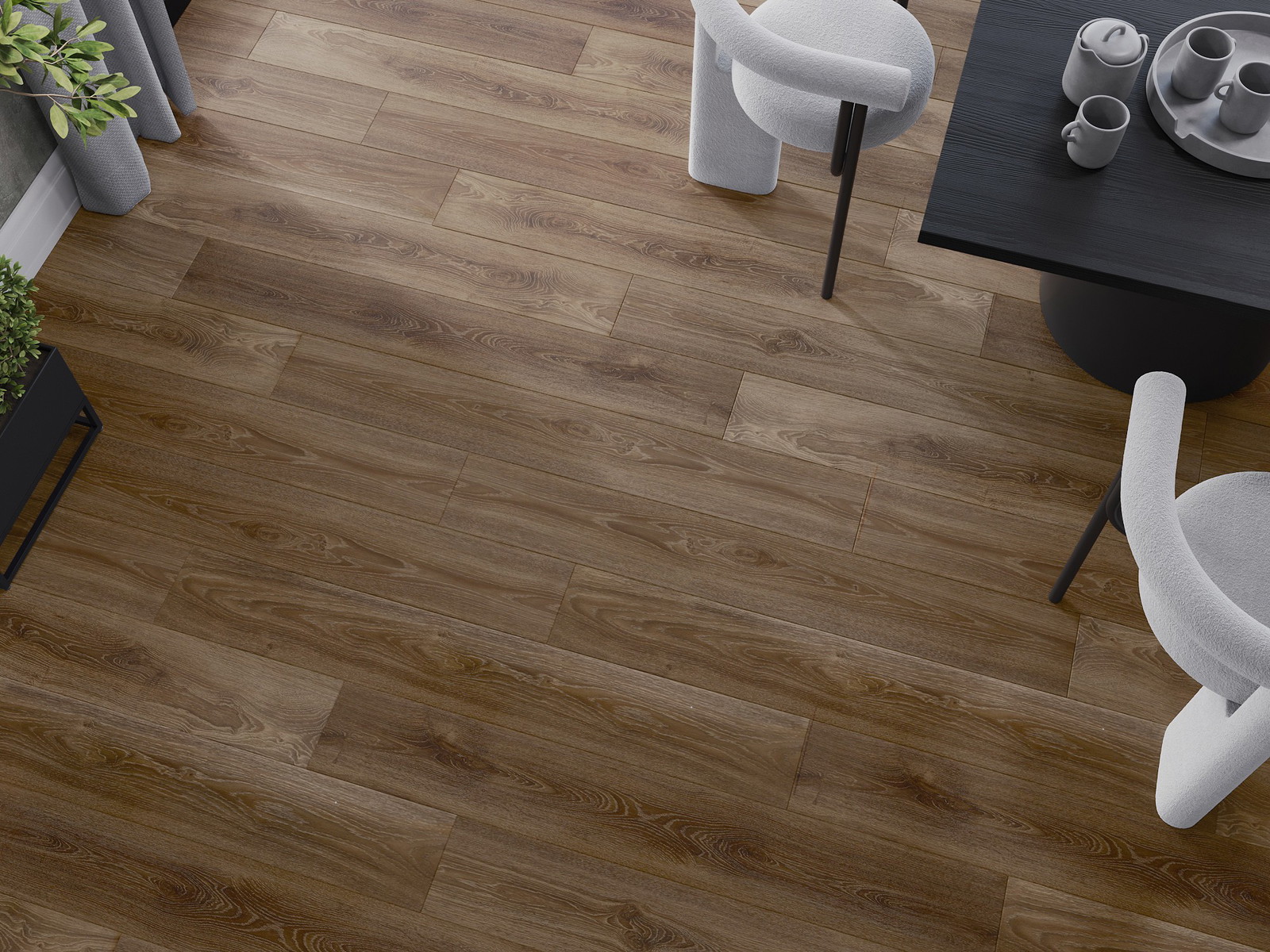 De panelen hebben een 4-zijdige voeg - elke zijde is zo gefreesd dat er bij het leggen een V-vormige verbinding ontstaat. Dit design geeft de vloer een duidelijkere structuur, waardoor het diepte en een esthetisch karakter krijgt. Dit effect wordt vooral gewaardeerd in moderne interieurs, waar details de unieke uitstraling van het interieur benadrukken.