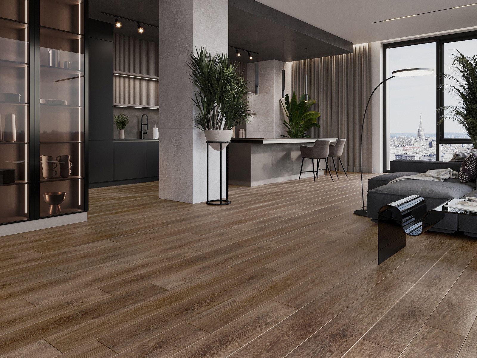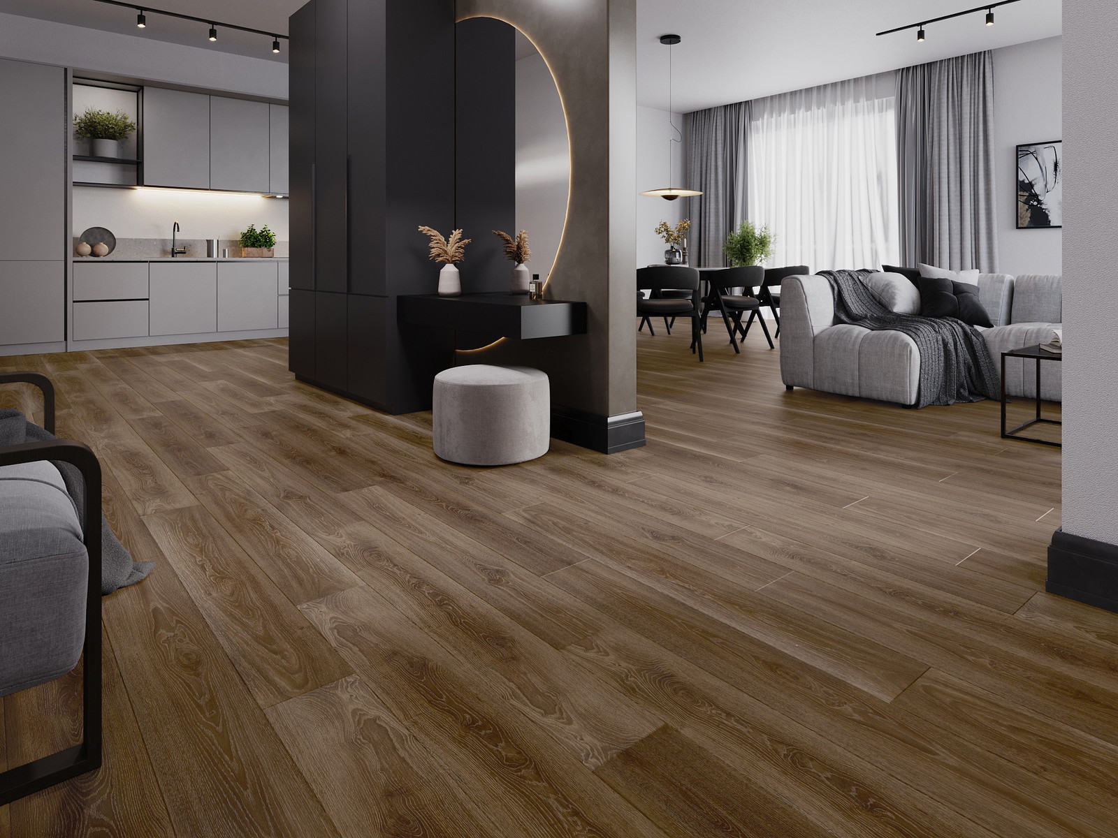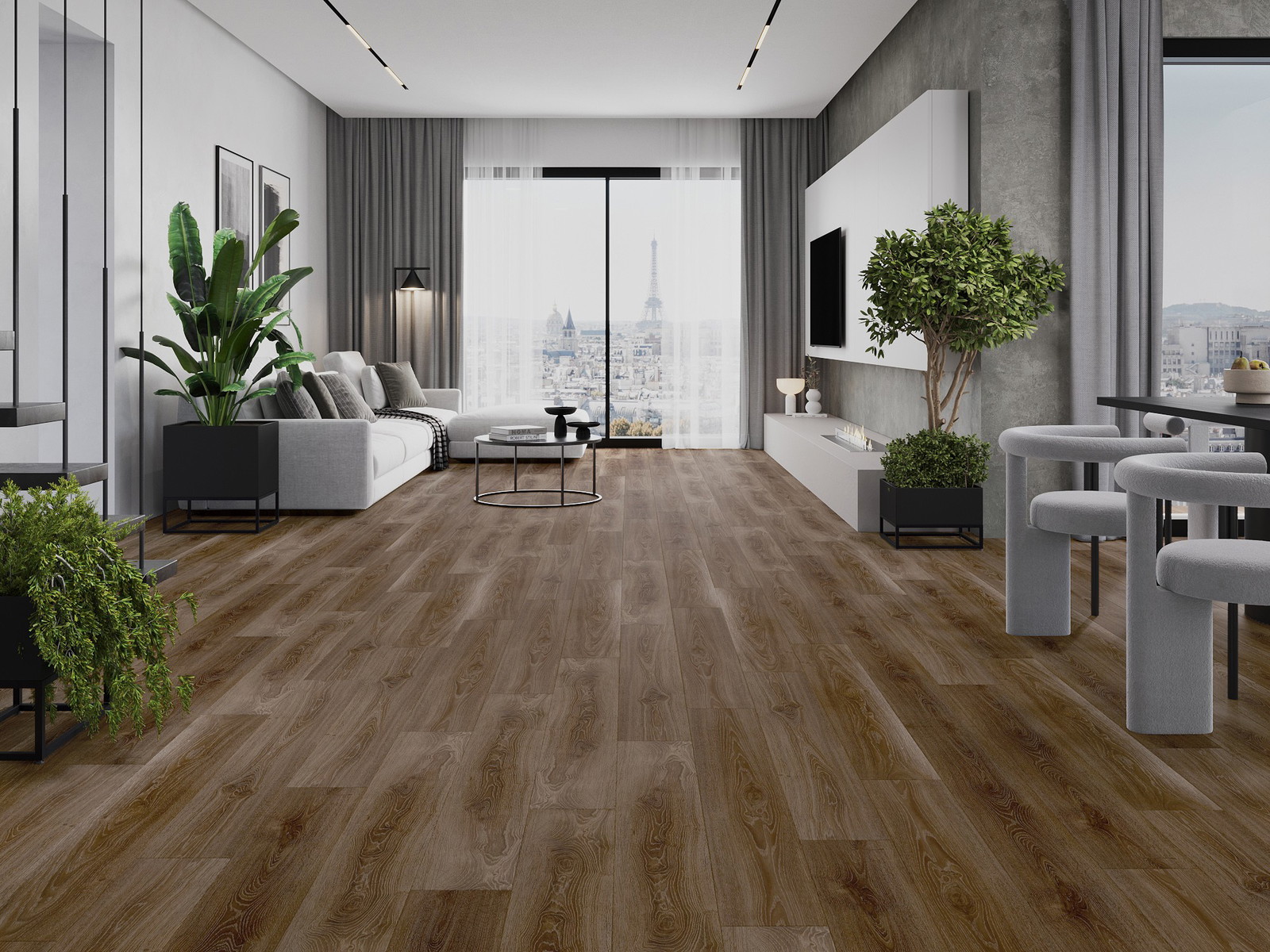 De panelen hebben een 4-zijdige voeg - elke zijde is zo gefreesd dat er bij het leggen een V-vormige verbinding ontstaat. Dit design geeft de vloer een duidelijkere structuur, waardoor het diepte en een esthetisch karakter krijgt. Dit effect wordt vooral gewaardeerd in moderne interieurs, waar details de unieke uitstraling van het interieur benadrukken.