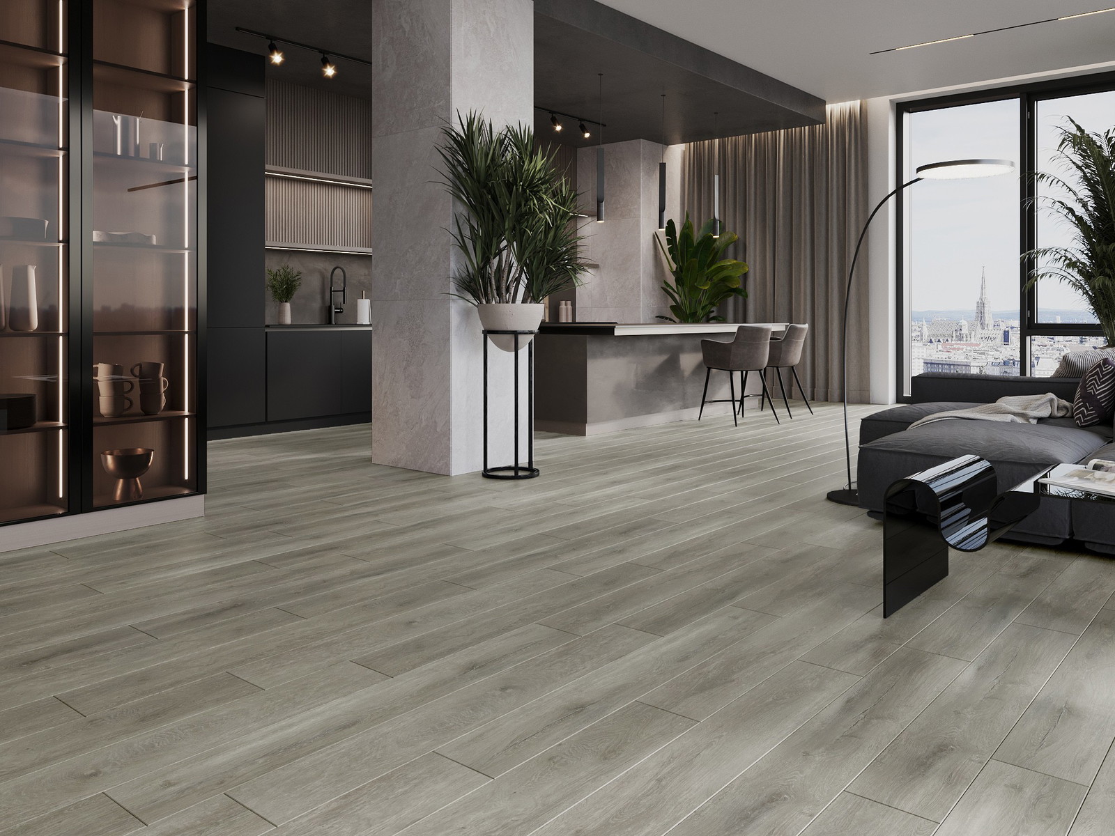 De panelen hebben een 4-zijdige voeg - elke zijde is zo gefreesd dat er bij het leggen een V-vormige verbinding ontstaat. Dit design geeft de vloer een duidelijkere structuur, waardoor het diepte en een esthetisch karakter krijgt. Dit effect wordt vooral gewaardeerd in moderne interieurs, waar details de unieke uitstraling van het interieur benadrukken.