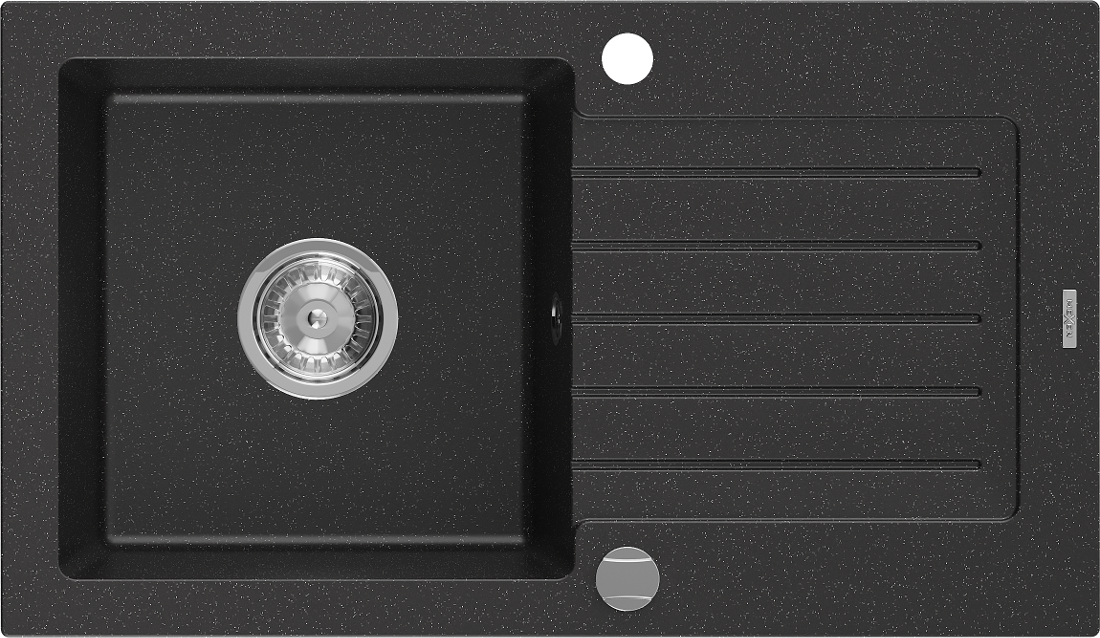 Mexen Pablo granitische gootsteen met 1 bak en afdruiprek 752 x 436 mm, zwart/zilveren metallic, chroom sifon - 6510751010-73