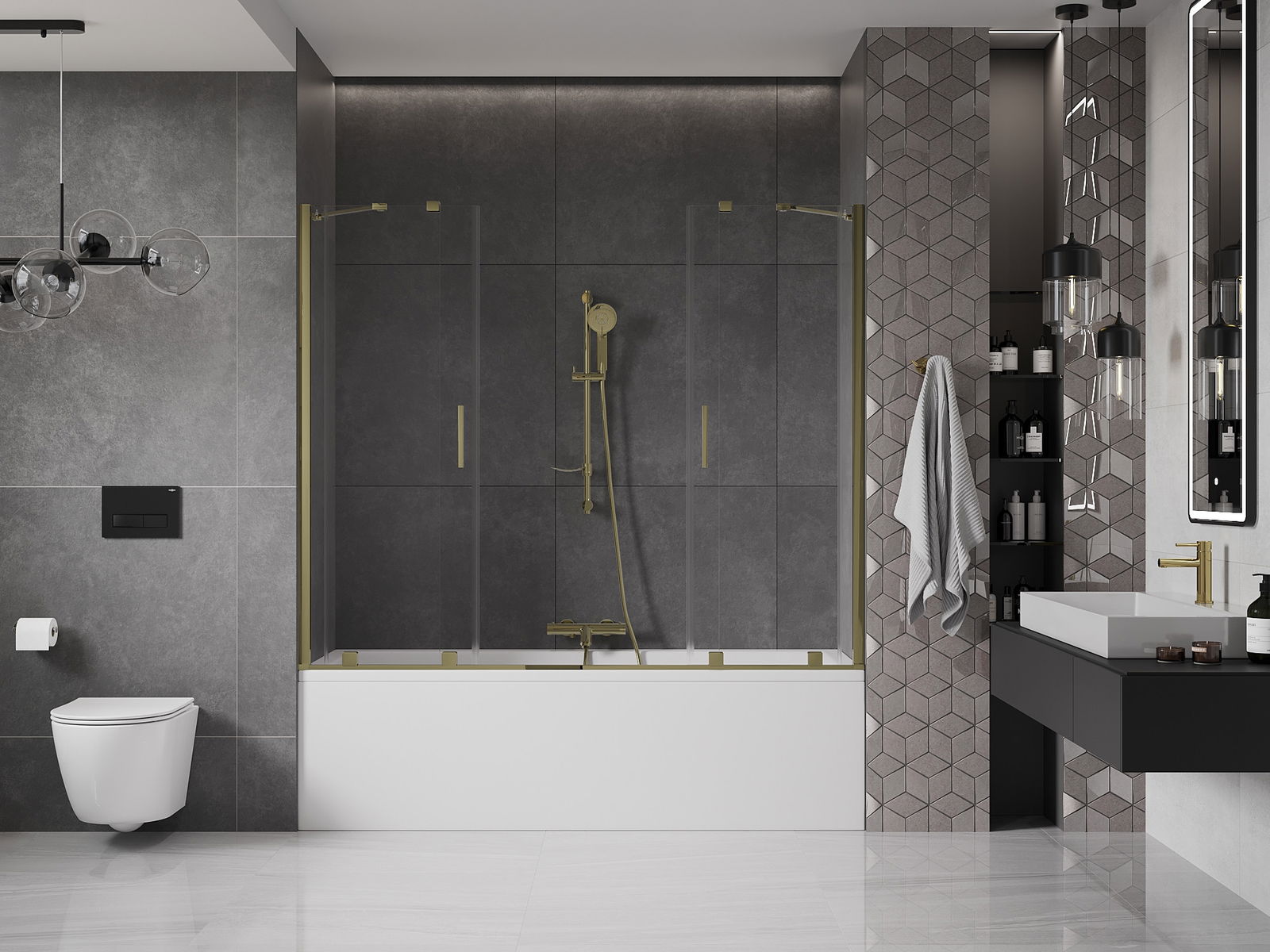 Mexen Velar Duo badwand scherm 2-delige schuif 190 x 150 cm, transparant, goud - 896-190-000-02-50