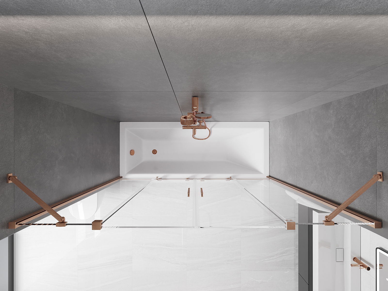 Mexen Velar Duo badwand scherm 2-delig schuifbaar 190 x 150 cm, transparant, geborsteld koper - 896-190-000-02-65