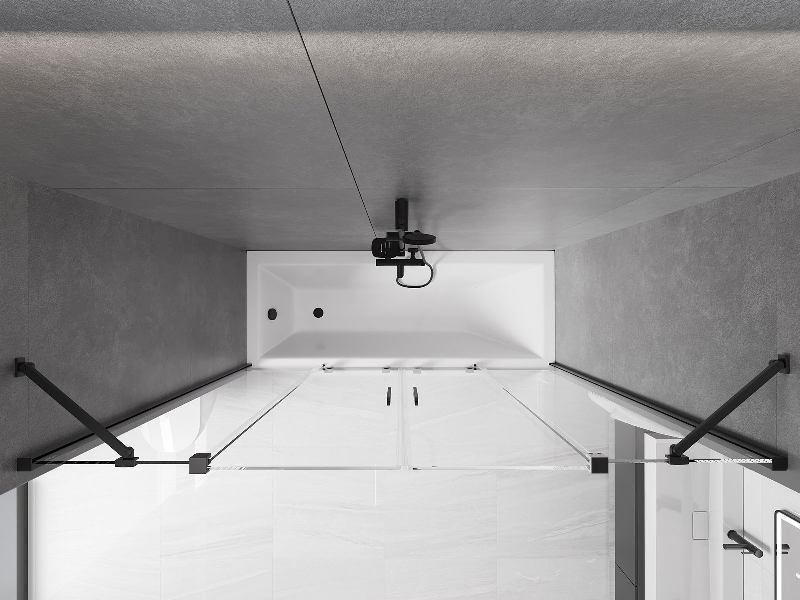Mexen Velar Duo badwand scherm 2-delig schuifbaar 190 x 150 cm, transparant, zwart - 896-190-000-02-70