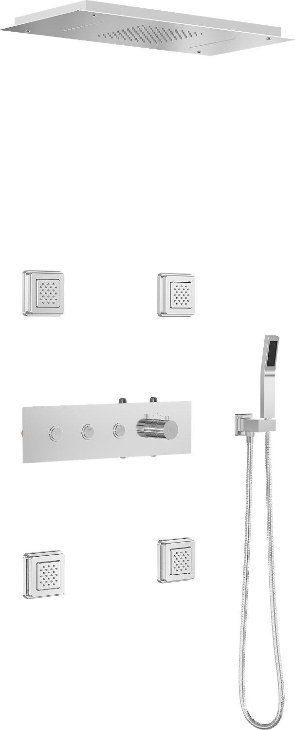 Standaard waterstraal die natuurlijke regen imiteert. Druppels stromen gelijkmatig over het lichaam, omhullen het met een aangenaam gevoel van hydratatie en laten je ontspannen en kalmerende zintuiglijke ervaring tijdens de dagelijkse douche onderdompelen.