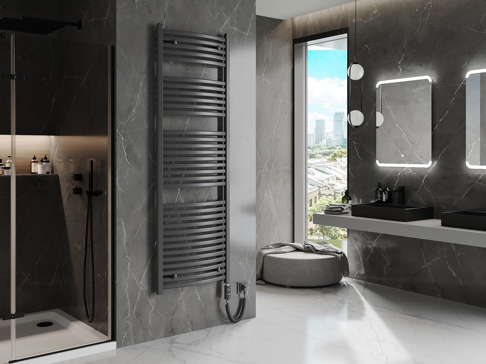 Mexen Helios elektrische radiator 1800 x 600 mm, 900 W, antraciet - W103-1800-600-2900-66