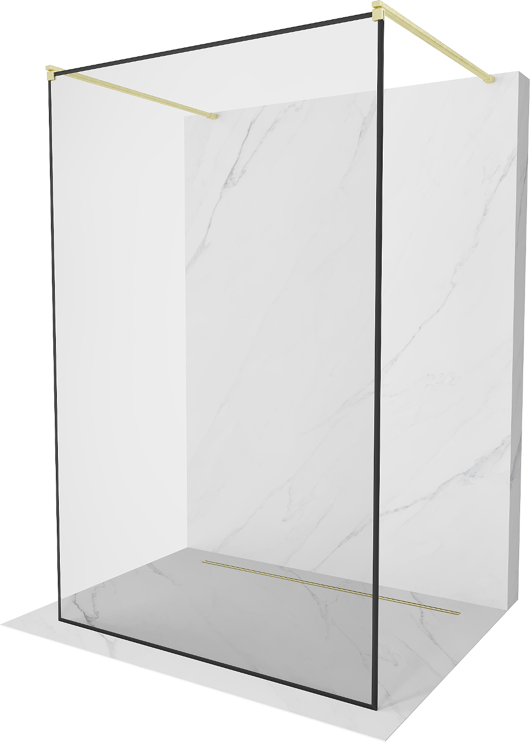 Mexen Kioto vrijstaande douchewand 110 x 200 cm, zwart frame 8 mm, geborsteld goud - 800-110-002-55-70