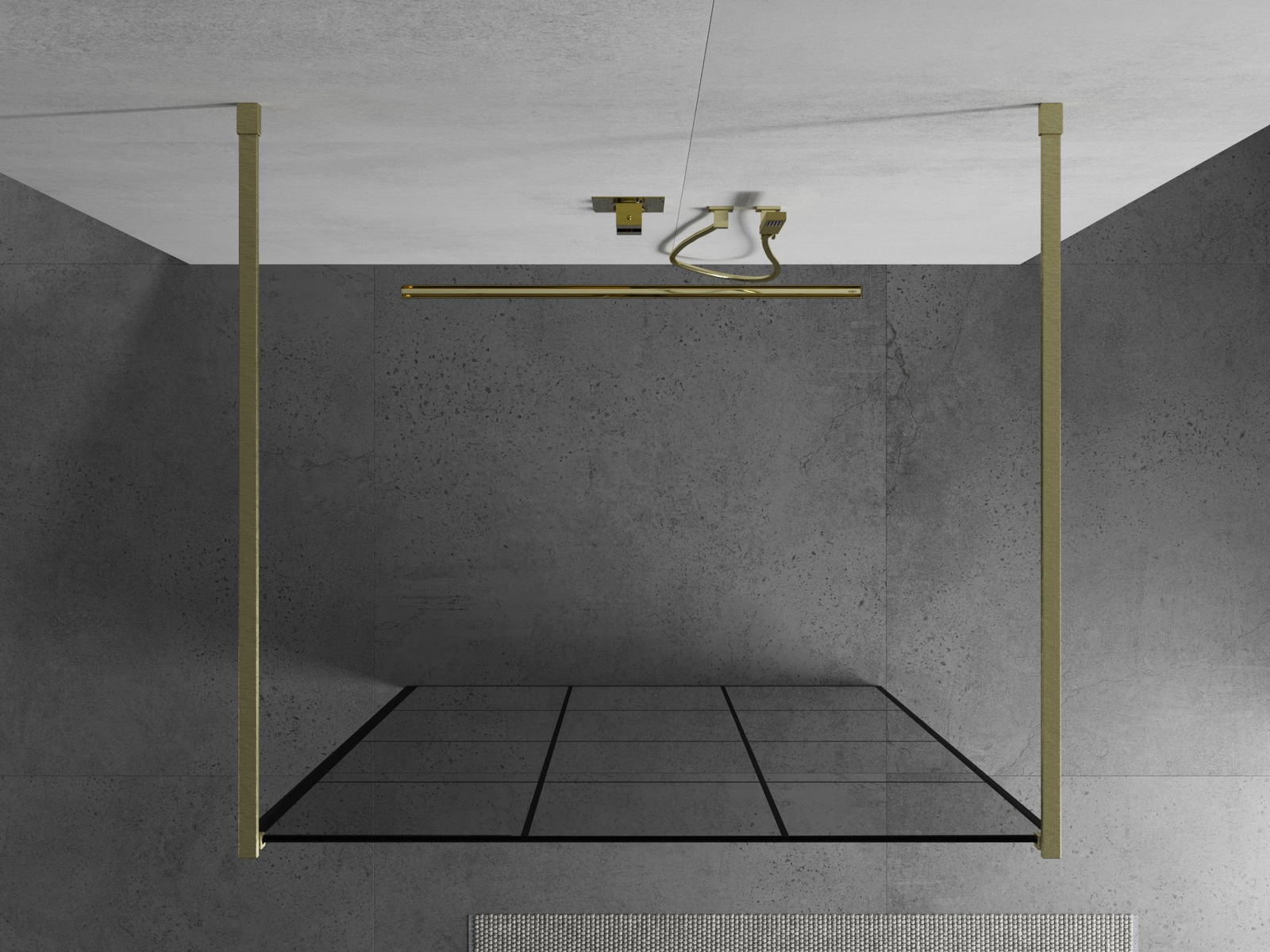 Mexen Kioto vrijstaande douchewand 100 x 200 cm, zwart raster 8 mm, geborsteld goud - 800-100-002-55-77