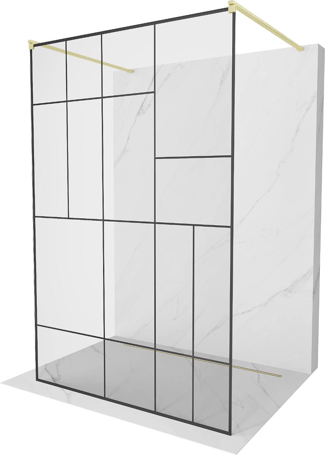 Mexen Kioto vrijstaande douchewand 130 x 200 cm, zwart patroon 8 mm, geborsteld goud - 800-130-002-55-78
