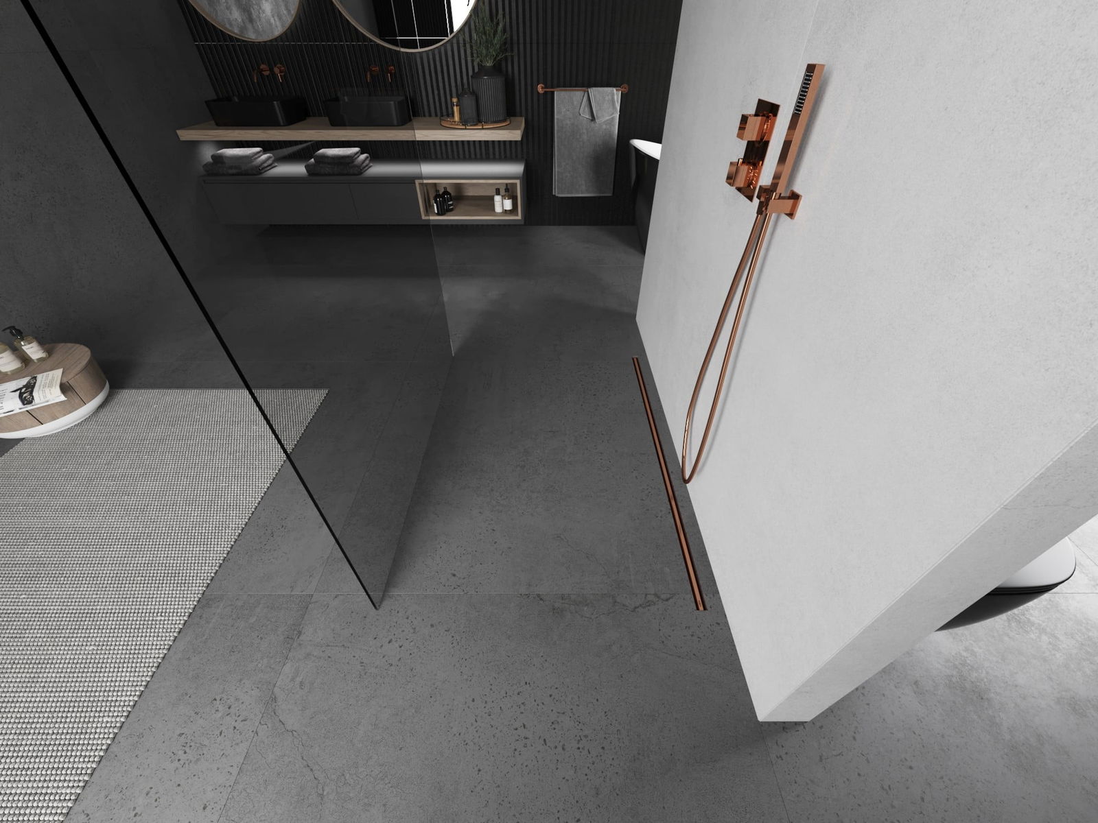 Mexen Kioto vrijstaande douchewand 110 x 200 cm, transparant 8 mm, geborsteld koper - 800-110-002-65-00