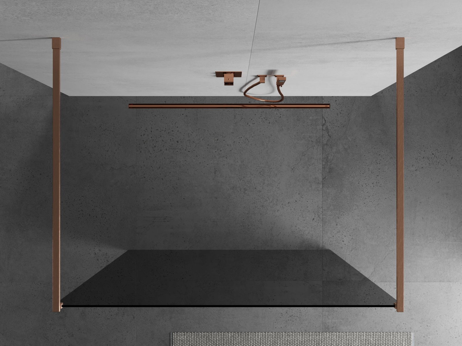 Mexen Kioto vrijstaande douchewand 100 x 200 cm, grafiet 8 mm, geborsteld koper - 800-100-002-65-40