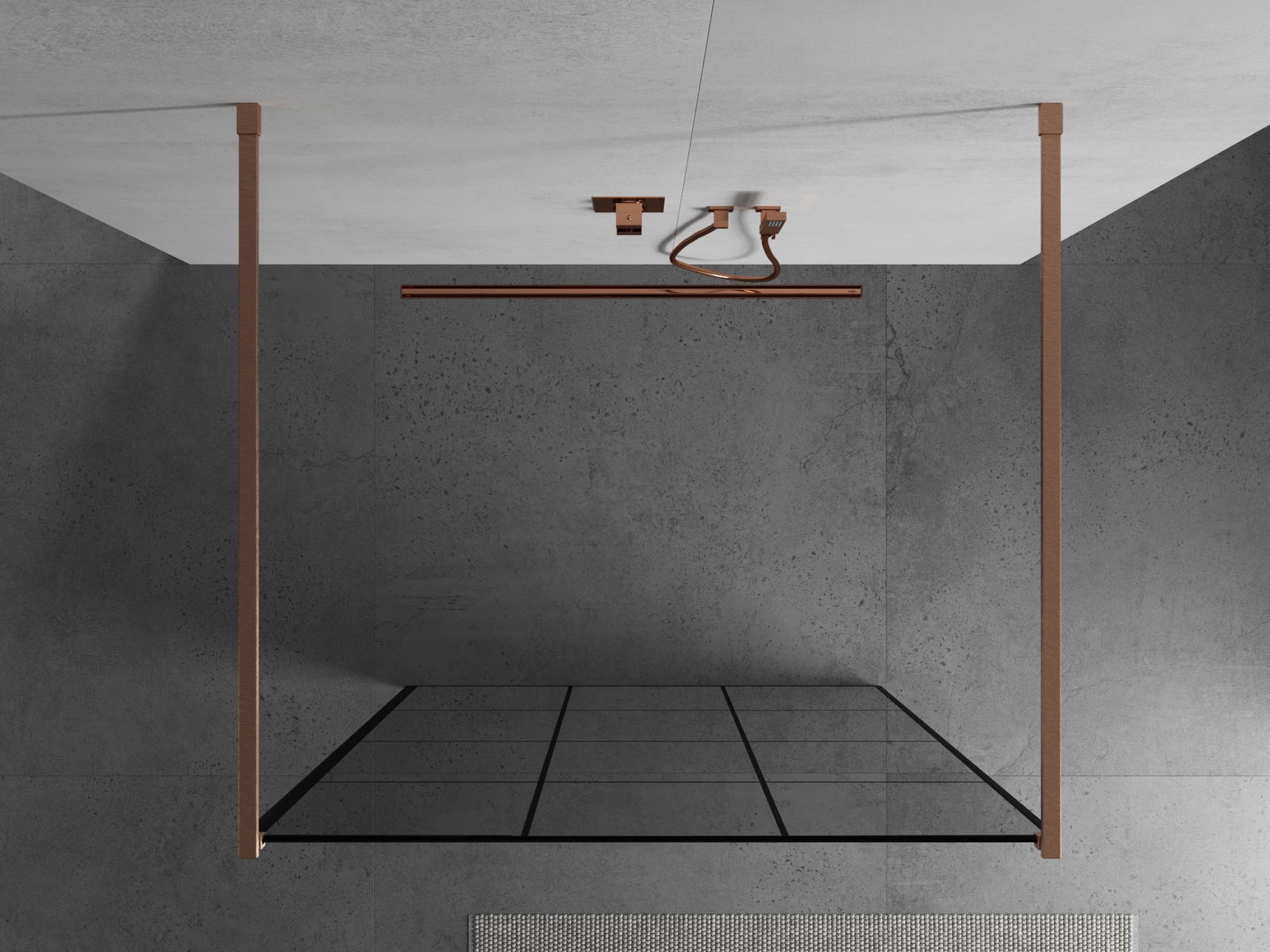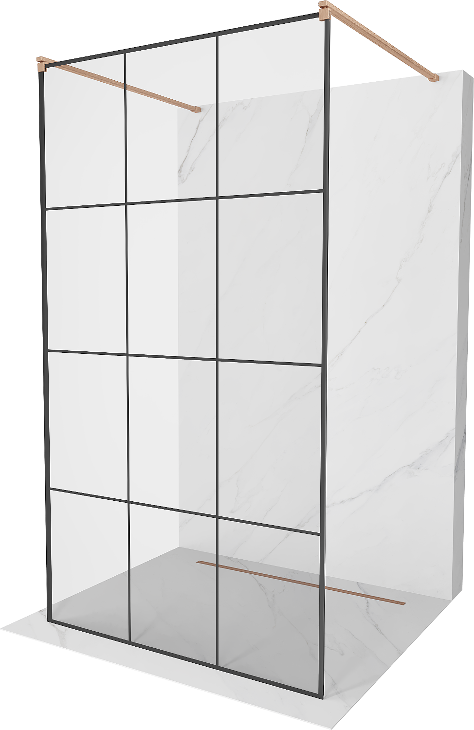 Mexen Kioto vrijstaande douchewand 100 x 200 cm, zwart raster 8 mm, geborsteld koper - 800-100-002-65-77