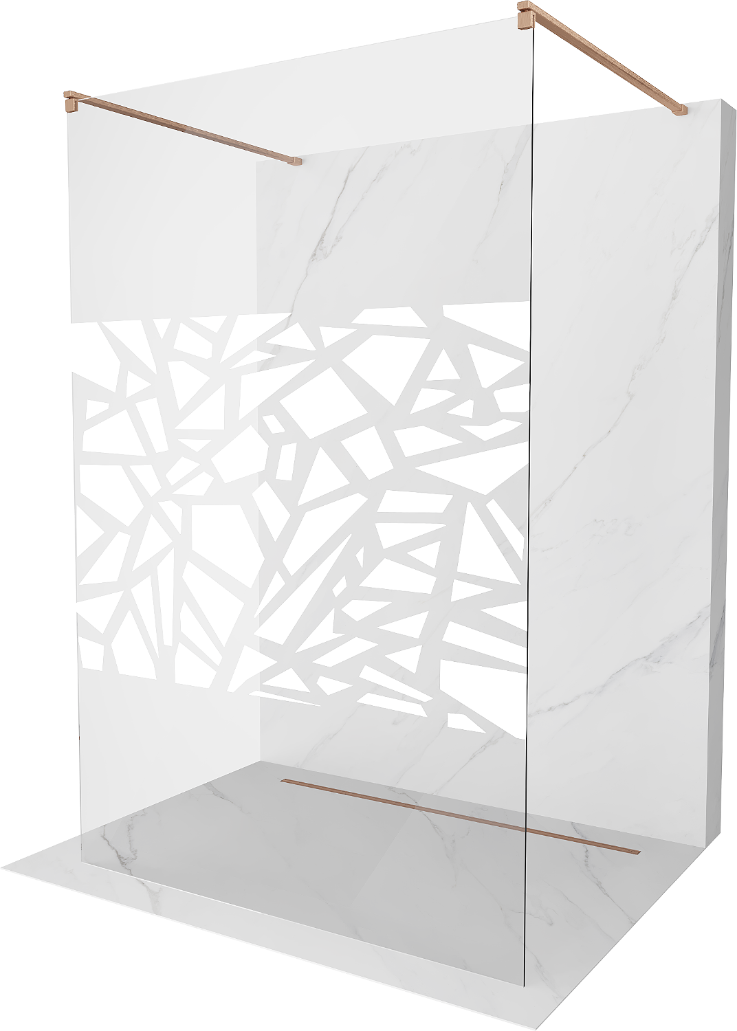 Mexen Kioto vrijstaande douchewand 130 x 200 cm, wit patroon 8 mm, geborsteld koper - 800-130-002-65-85