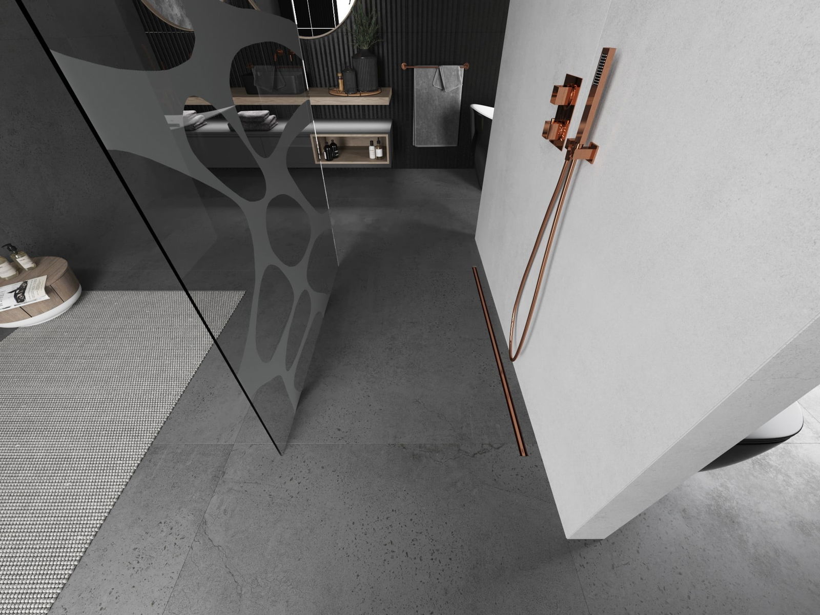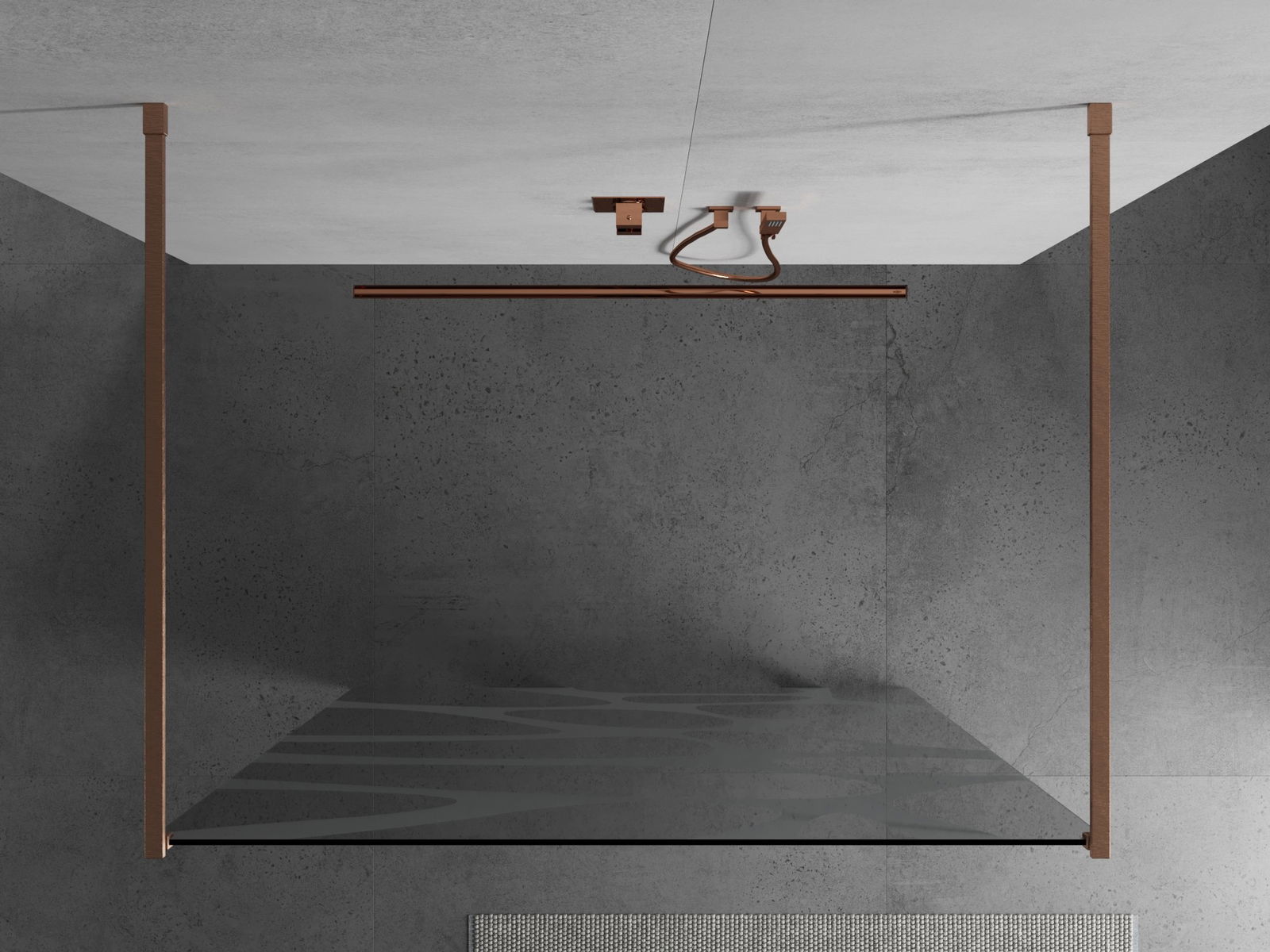 Mexen Kioto vrijstaande douchewand 110 x 200 cm, witte golf 8 mm, geborsteld koper - 800-110-002-65-97