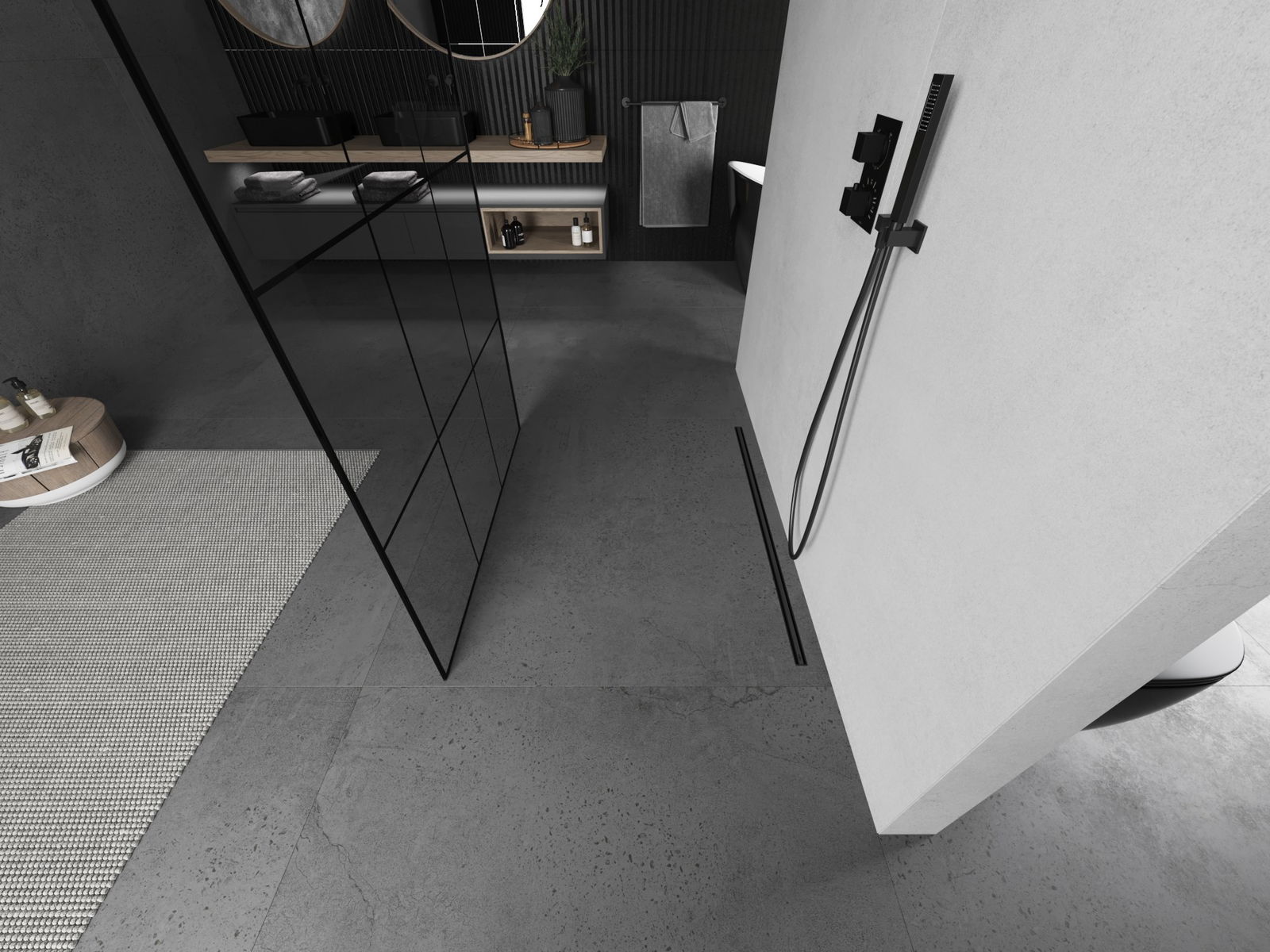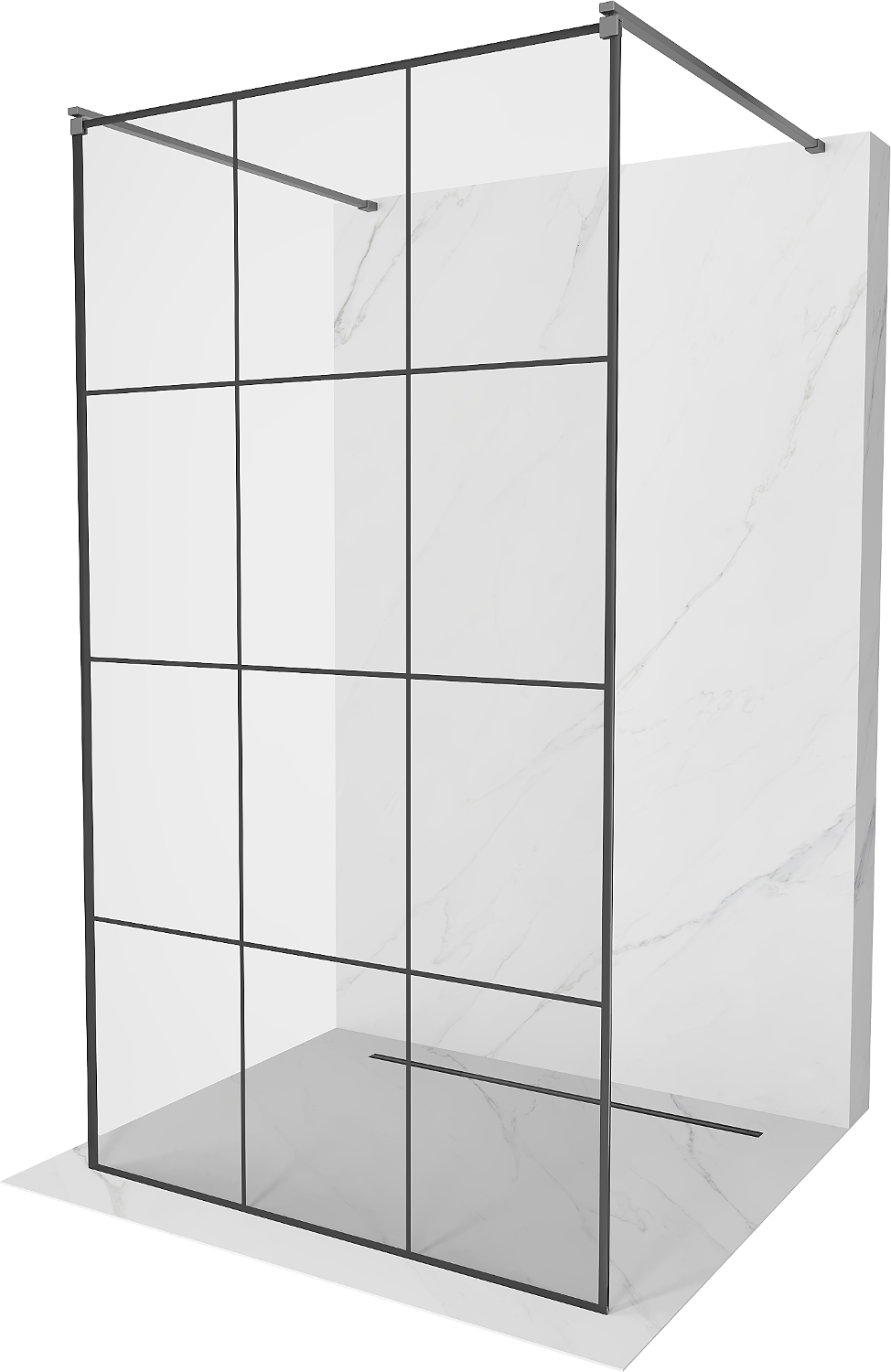Mexen Kioto vrijstaande douchewand 120 x 200 cm, zwart raster 8 mm, gun metal - 800-120-002-95-77
