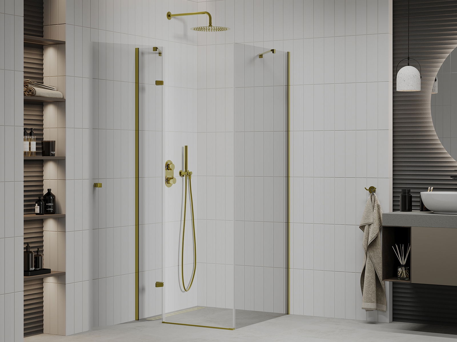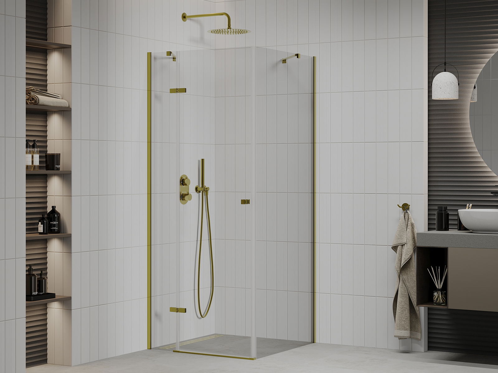 Mexen Roma douchecabine met draaideur 80 x 80 cm, transparant, goud - 854-080-080-50-00