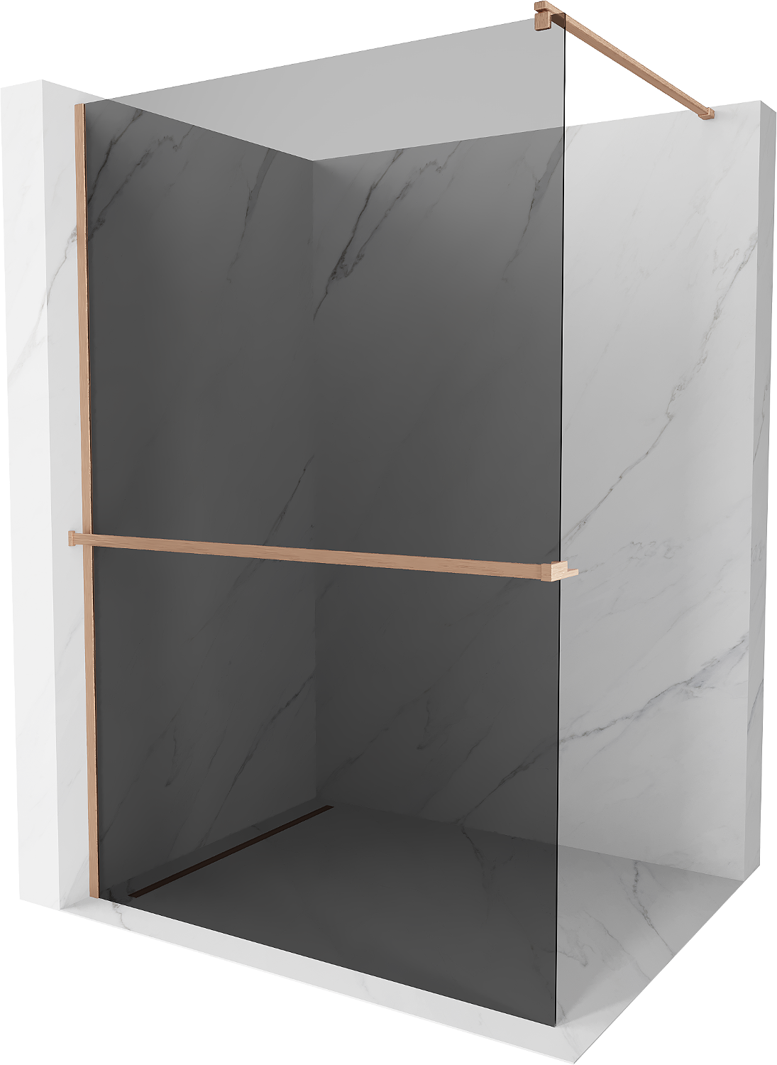 Mexen Kioto+ douchewand met plank Walk-in 120 x 200 cm, grafiet, geborsteld koper - 800-120-121-65-40