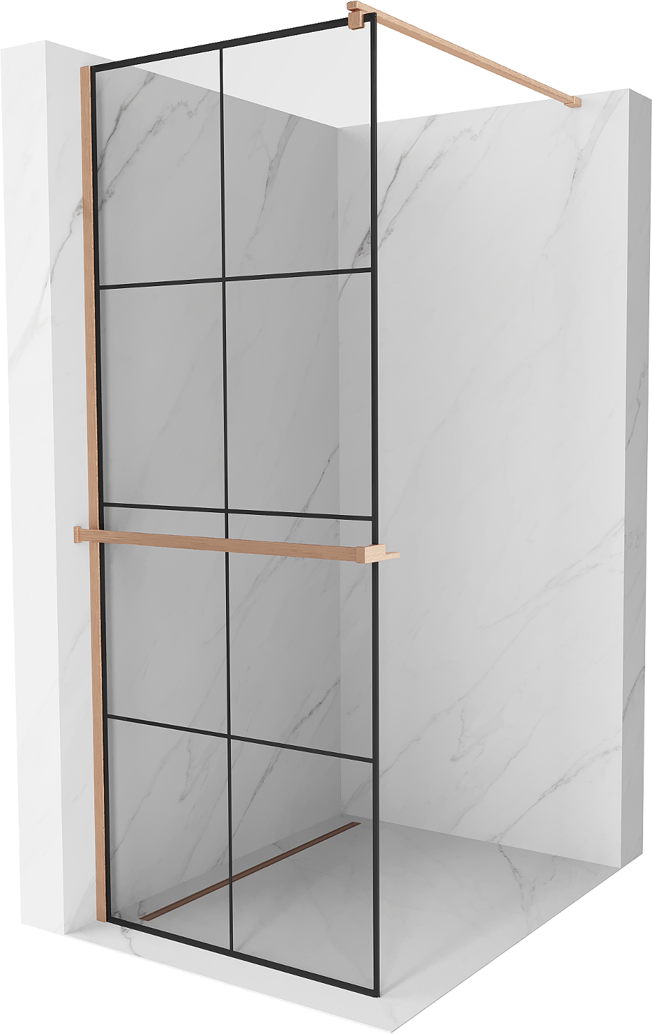 Mexen Kioto+ douchewand met plank Walk-in 90 x 200 cm, zwart raster, geborsteld koper - 800-090-121-65-77