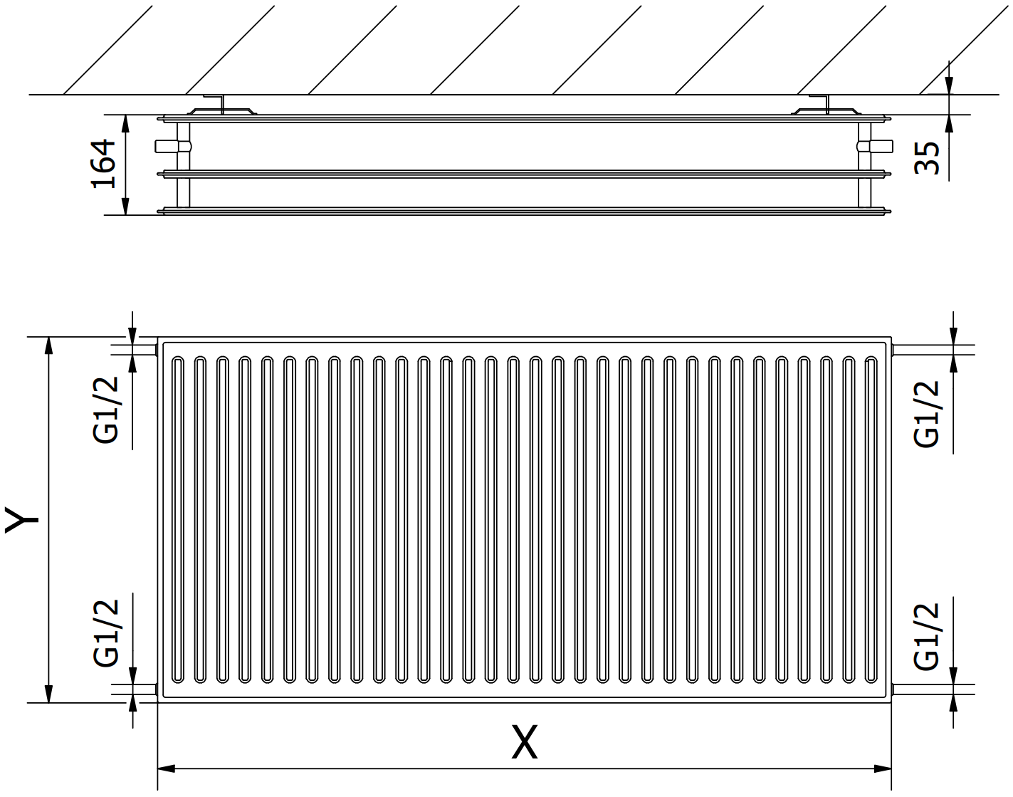 Afstand tussen verticale waterkanalen: 33,3 mm