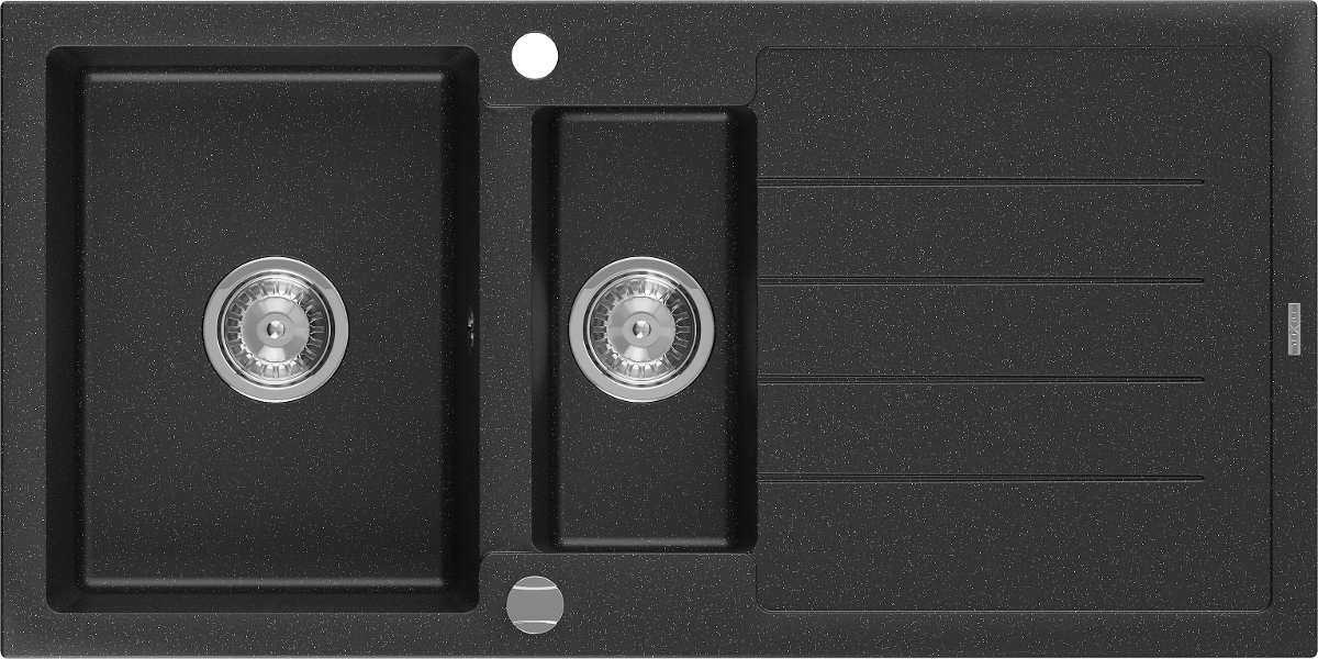 Mexen Andres granieten gootsteen 1,5-komoren met afdruiprek 1000 x 500 mm, zwart/zilveren metallic, chromen sifon - 6515101510-?