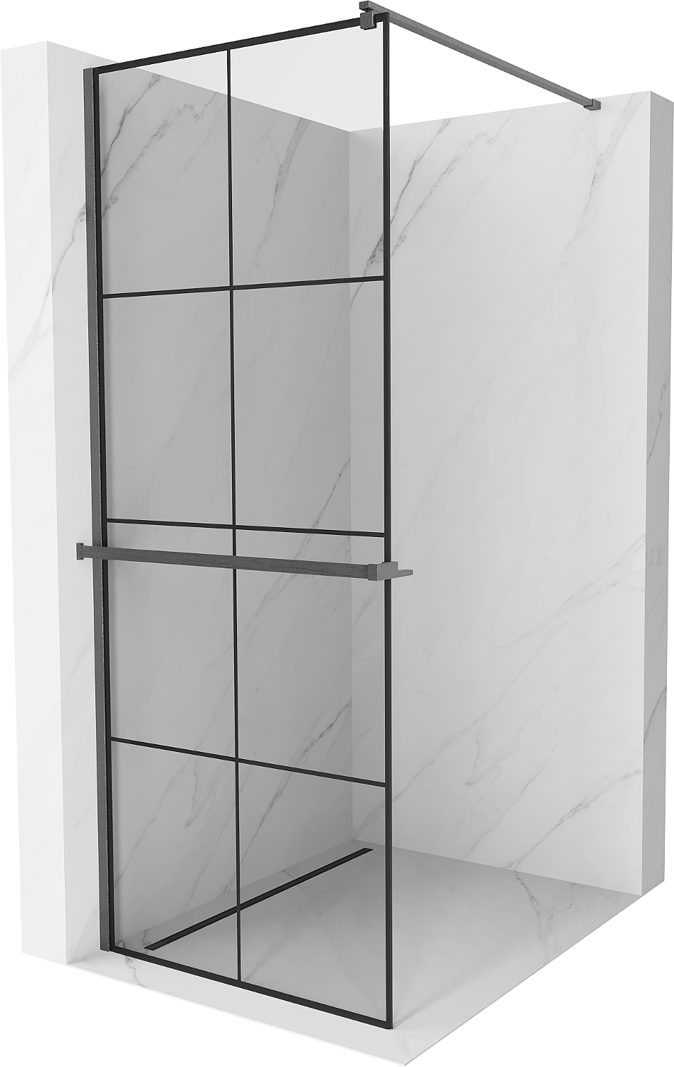 Mexen Kioto+ Douchewand met plank Walk-in 90 x 200 cm, zwart raster, gepolijst geweergrijs - 800-090-121-66-77