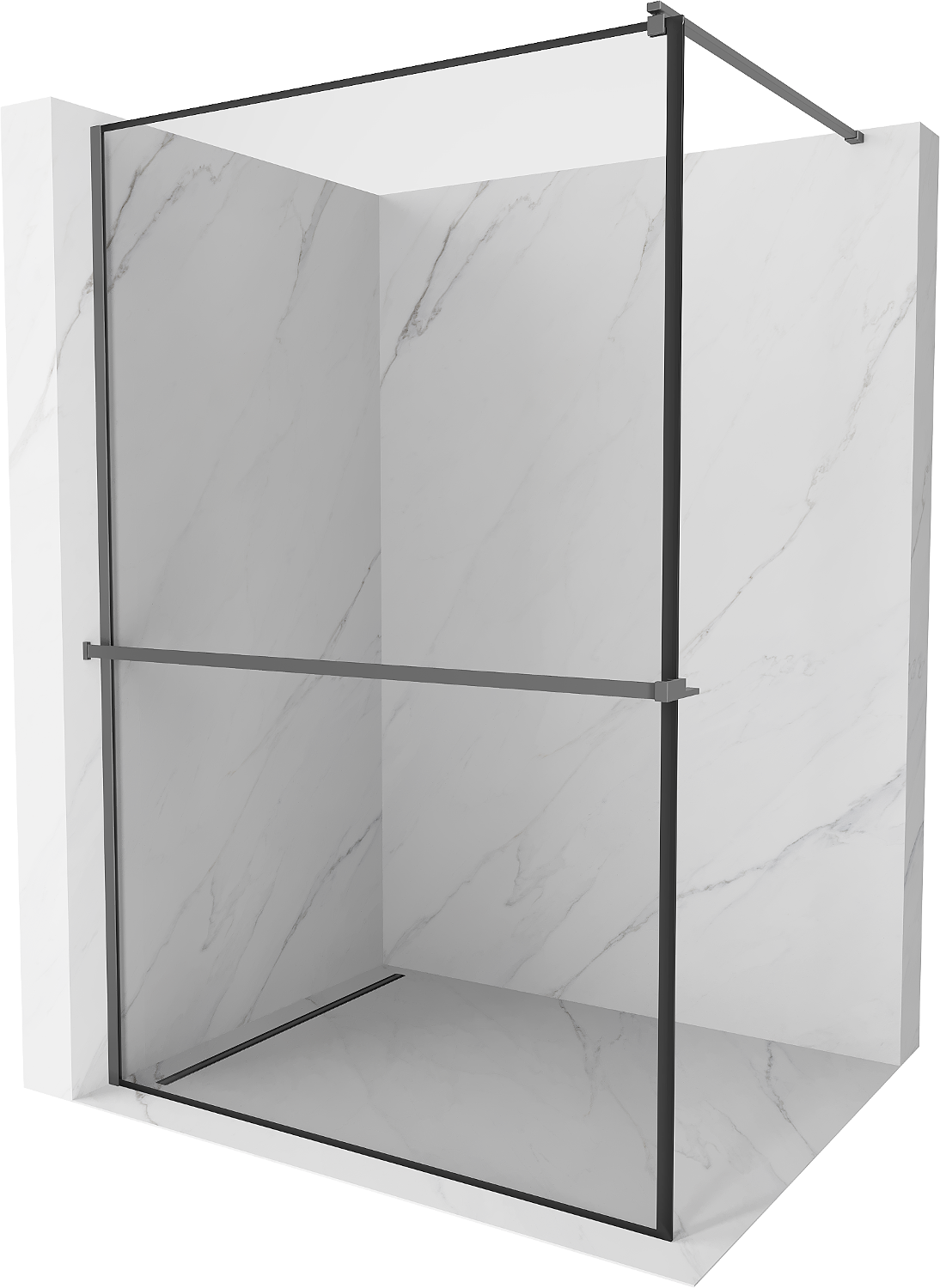 Mexen Kioto+ douchewand met plank Walk-in 120 x 200 cm, zwart frame, gun metal - 800-120-121-95-70