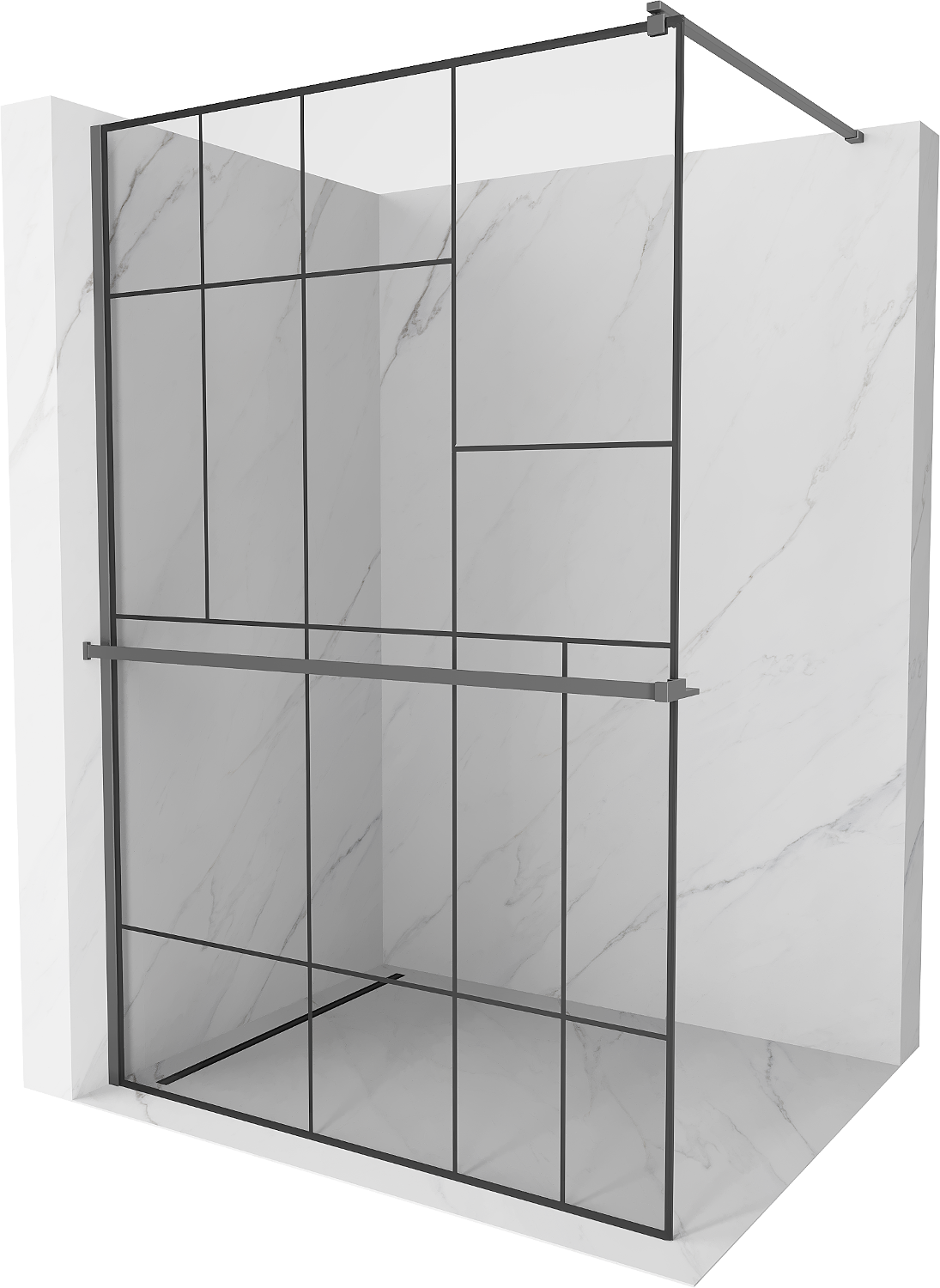 Mexen Kioto+ douchewand met plank Walk-in 130 x 200 cm, zwart patroon, gun metal - 800-130-121-95-78